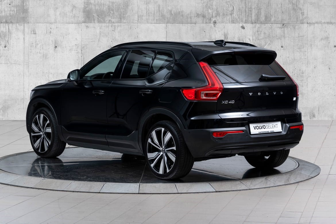 Den helelektriske Volvo XC40 kombinerer kraft, luksus og sikkerhet i en urban SUV-pakke. Med en imponerende elektrisk motor som leverer 408 hk og permanent firehjulstrekk, får du både kjøreglede og trygghet i toppklasse. Bilen byr på romslig plass og den velkjente Volvo-sikkerheten, samtidig som den leverer en elektrisk rekkevidde på opptil 417 km (WLTP) takket være en batterikapasitet på 78 kWh. På lengre turer sørger hurtiglading for at batteriet lades fra 20 % til 80 % på bare 40 minutter (med opptil 150 kW).