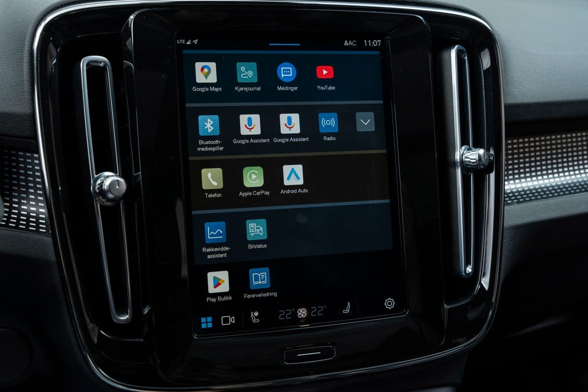Volvo XC40 er utstyrt med et moderne Android-basert infotainmentsystem som inkluderer Google Assistant, Google Maps og Google Play Store. Dette gir en sømløs digital opplevelse, og takket være OTA (Over-The-Air) oppdateringer, holdes bilen alltid oppdatert – på linje med dagens smartteknologi. Dette gjør XC40 til en bil som er klar for både hverdagsbruk og lengre eventyr.