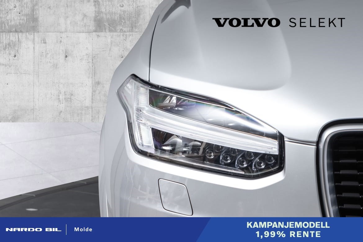 XC90 er en stor og romslig familiebil som kan tilby noen av de beste kjøreegenskapene i klassen. Dette er en folkefavoritt innen SUV-klassen og dekker dine ønsker og behov på fantastisk vis. XC90 er en stor og romslig familiebil med 7 seter, høy bakkeklaring og firehjulstrekk - noe som gjør denne ypperlig for krevende norske forhold. Her sitter du høyt og oversiktlig med fantastisk kjørekomfort. Så her kan man legge ut på langtur med familie og venner med et stort glis om munn og pakke med seg alt man måtte ønske, og enda litt til – du har tross alt 695l med femseter og 350l med alle 7 setene i bruk.
