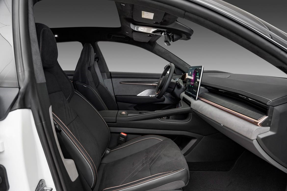 Med 544 hk og adaptivt luftunderstell har 001 mye å by på. Toppfarten er på 200 km/t, mens 0-100 går på 3,8 sekunder.