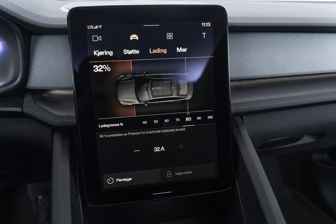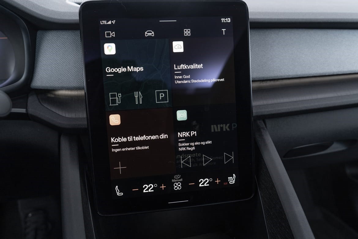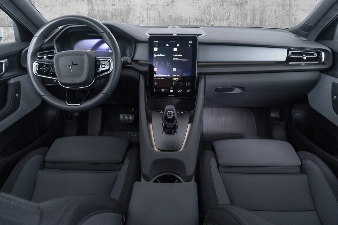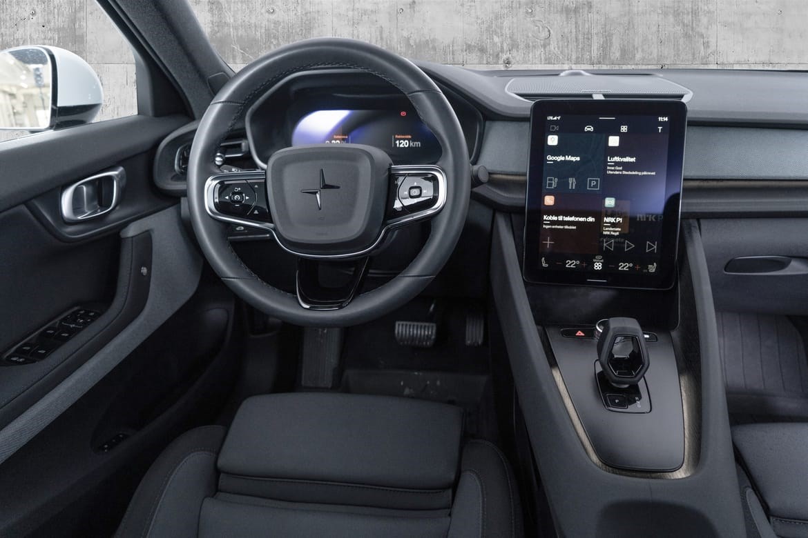 Interiøret preges av rene linjer, bærekraftige materialer og skandinavisk eleganse – et rom der hver detalj er nøye gjennomtenkt for å gi både ro og luksus. Den store infotainmentskjermen med integrert Google sørger for sømløs navigasjon og underholdning.
