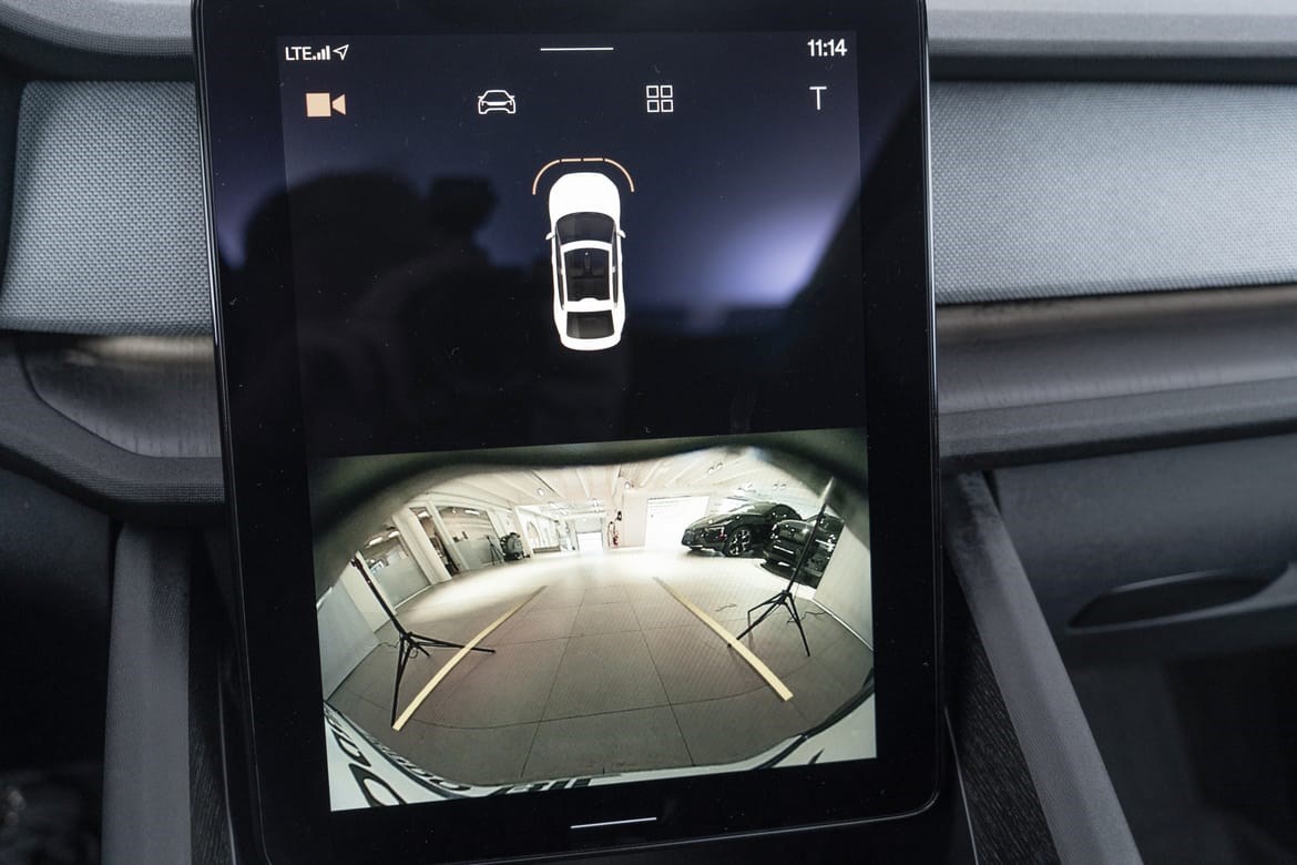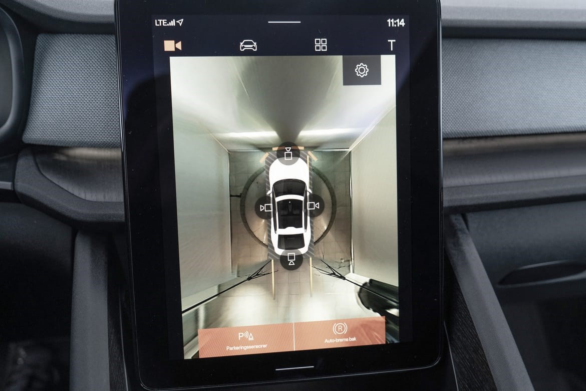 • kamerateknologien viser deg bilen din og omgivelsene i høy oppløsing i fugleperspektiv – svært nyttig når du rygger eller manøvrerer på trange steder med begrenset sikt. Systemet bruker fire kameraer: to ved sidespeilene, ett i fronten og ett bak. Hvis du berører et kamerabilde på senterdisplayet, vises det et bilde fra bare det kameraet. Det bakre kameraet kan også gi deg et forstørret bilde av området rett bak bilen, noe som er særlig praktisk når du kjører med tilhenger.