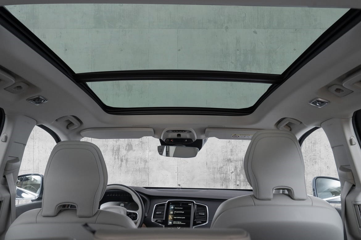 - Volvos elektrisk styrte panoramatak bringer luft og lys inn i bilen. For å gi ventilasjon åpnes eller vippes fremre del med et knappetrykk. En elektrisk solgardin i perforert tekstil reduserer skinn inn i bilen på solfylte dager. Solgardinen får kupeen til å føles luftigere.