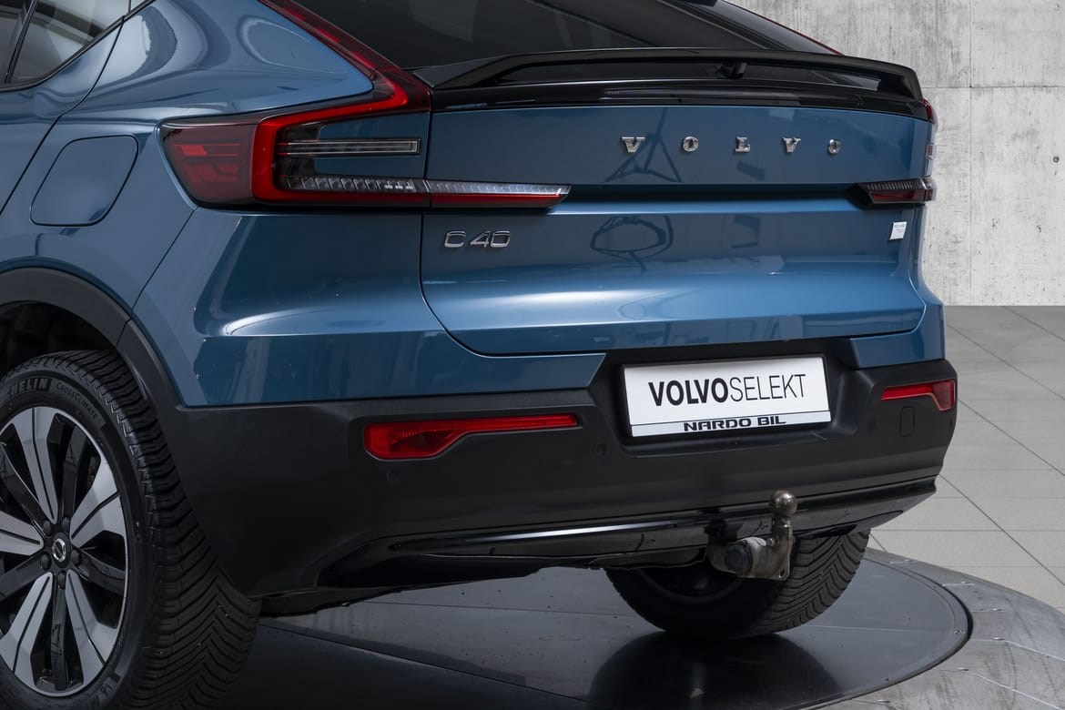 Den helelektriske C40 byr på 408 hestekrefter og firehjulstrekk, som gir umiddelbar respons og selvsikker kontroll i alle situasjoner. Med en rekkevidde på opptil 415 kilometer (WLTP) kan du reise langt – stillegående, effektivt og utslippsfritt.