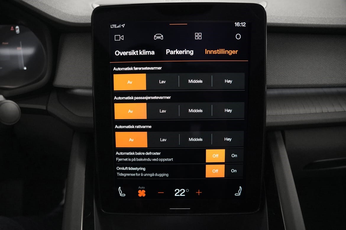 Oppvarmede bakseter: Elektrisk oppvarming på begge yttersetene med individuell varmevalg for komfort på lengre turer