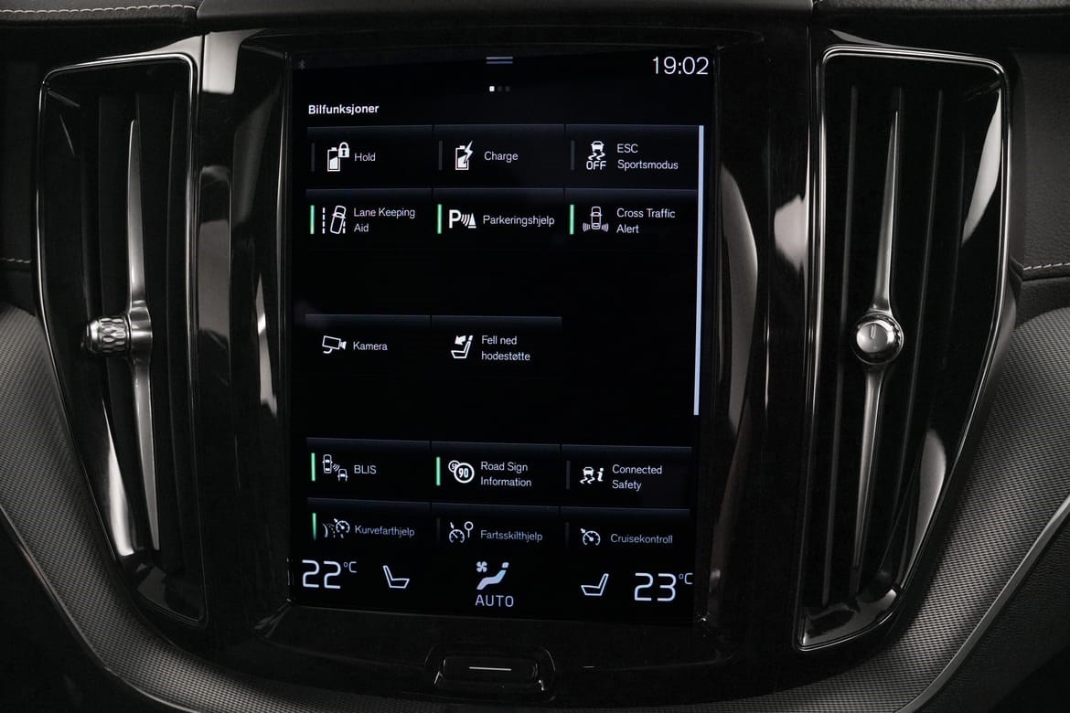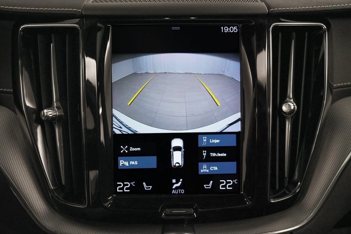 - Bakre og fremre parkeringshjelp gjør det lettere å manøvrere inn i trange rom med begrenset syn. Etter som bilen nærmer seg en hindring, blir du varslet av pulserende lyd fra bakre eller fremre høyttalere og grafikk på midtdisplayet. Frekvensen på varselsignalet øker jo nærmere du kommer hindringen