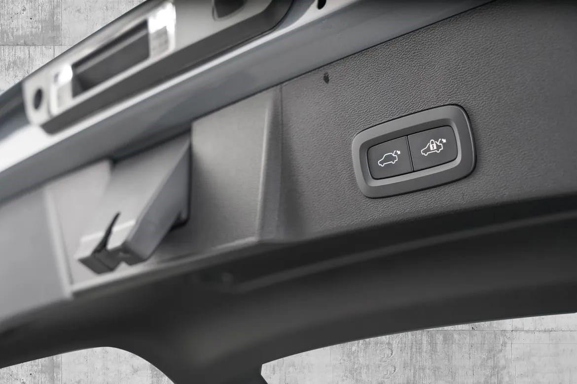 - Gled deg over Volvo’s praktiske semielektriske innfellbare hengerfeste. Et trykk på en knapp inne i bagasjerommet, så felles tilhengerfestet ut og er klart til bruk. Og når det ikke trengs, felles det inn igjen med et trykk så det ikke er i veien. Dette hengerfestet har også vår Trailer Stability Assist-teknologi. Hvis tilhengeren begynner å vingle ved høyere fart enn 50 km/t, blir bremsene på ett eller flere hjul aktivert automatisk, slik at du får tilbake stabiliteten og kontrollen. For din sikkerhets skyld vil systemet også utføre en sikkerhetssjekk før du kjører. En innebygd, lett tilgjengelig strømkontakt gjør det enklere å feste tilhengeren. 1 800Kg.