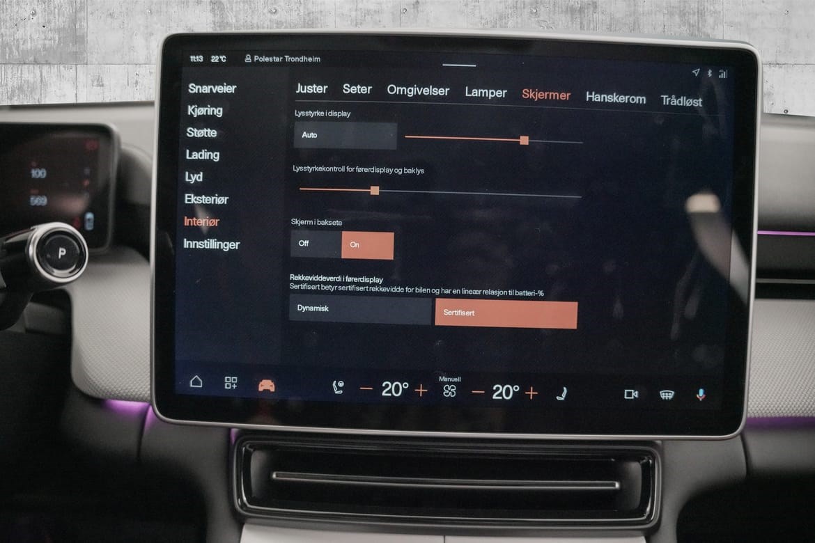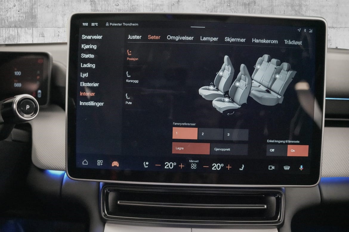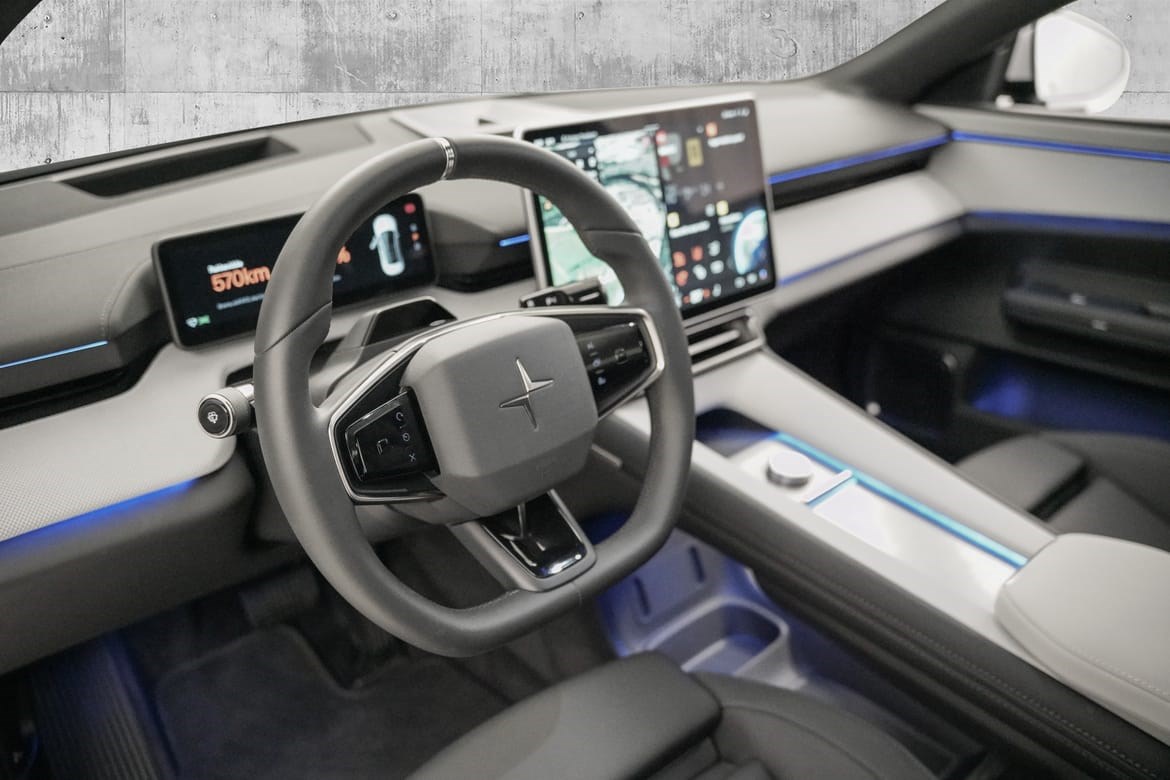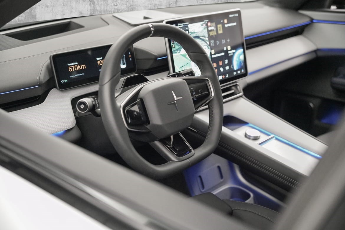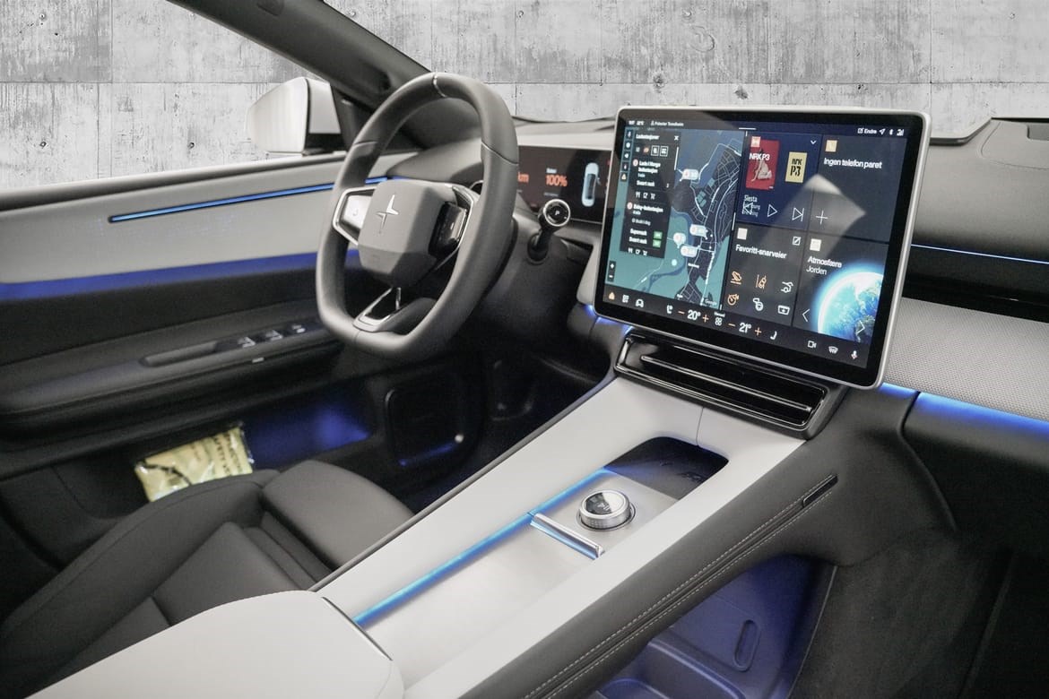 Det futuristiske interiøret kombinerer minimalistisk design med avansert teknologi og bærekraftige materialer, mens Polestars banebrytende sikkerhetssystemer gir trygghet på veien.