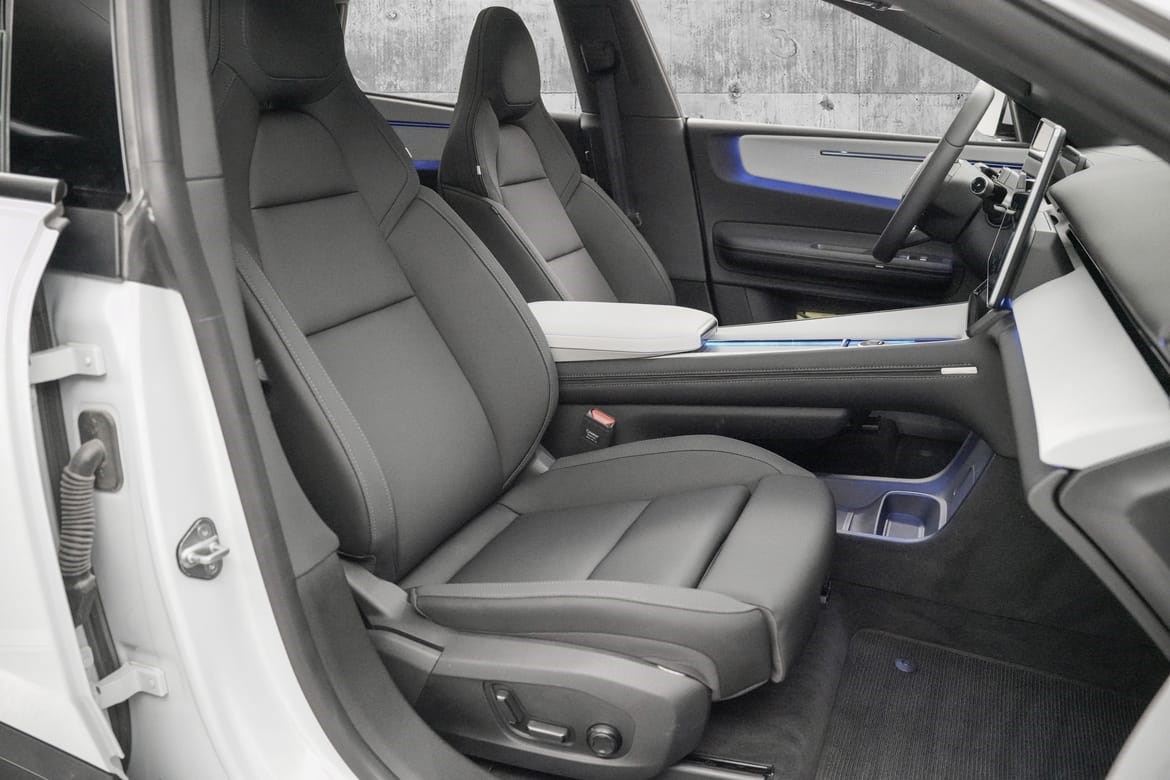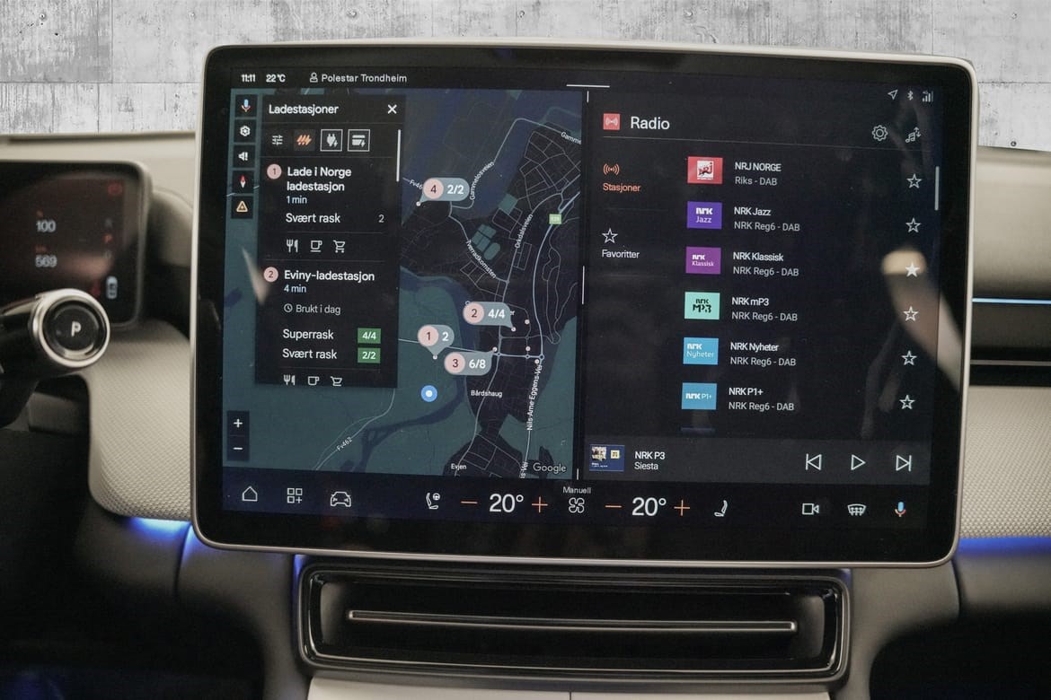 Bærekraft møter luksus interiør i resirkulerte materialer uten å gå på kompromiss med komfort Sømløs teknologi Android Automotive med Google-integrasjon og stemmestyring Lang rekkevidde kjør langt uten bekymringer