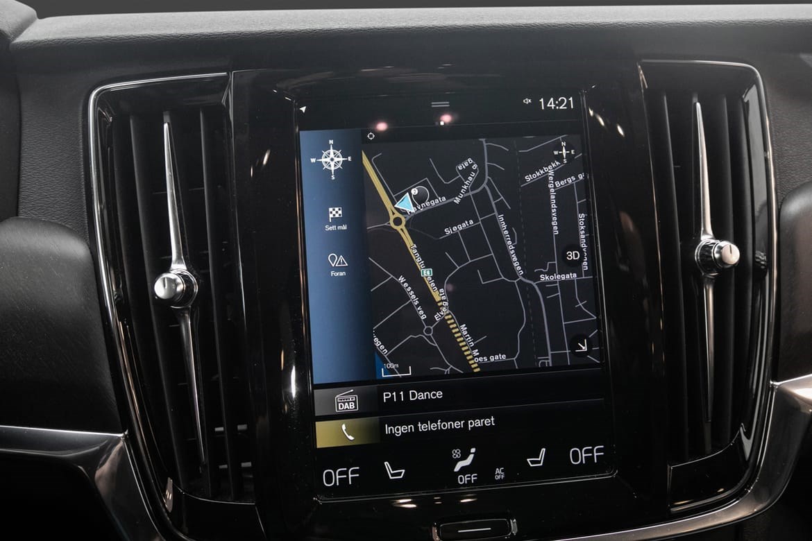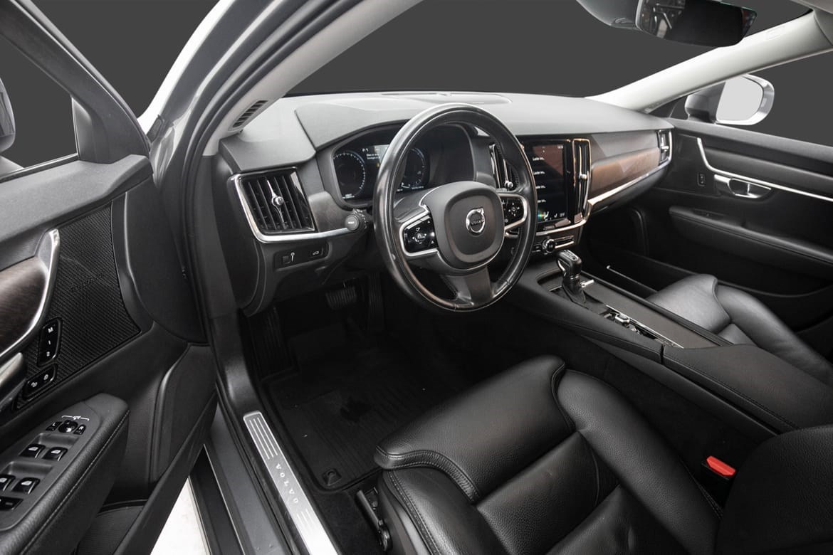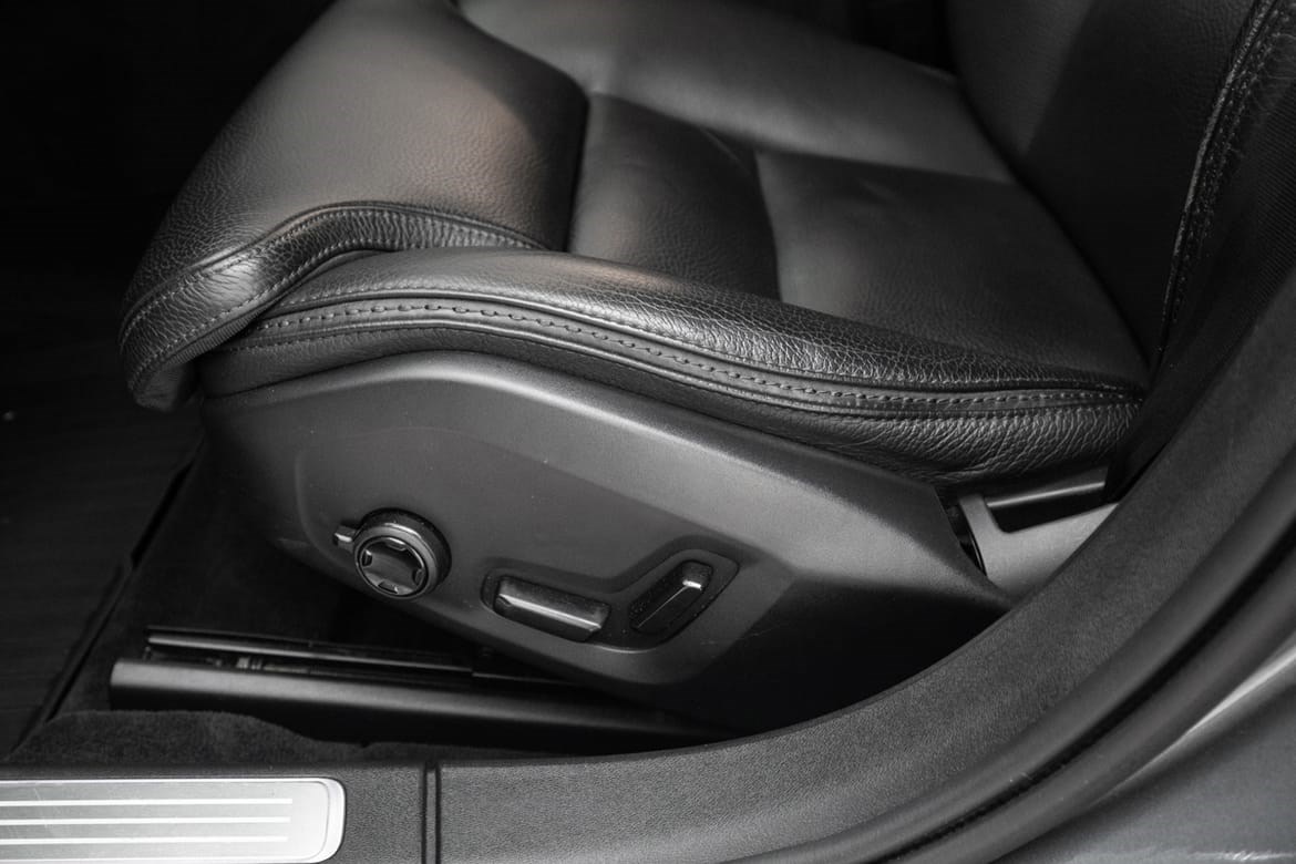 Bilen har en flott utstyrsliste og riktig fargekombinasjon med Osmium Grey metallic lakk og mørkt skinninteriør.