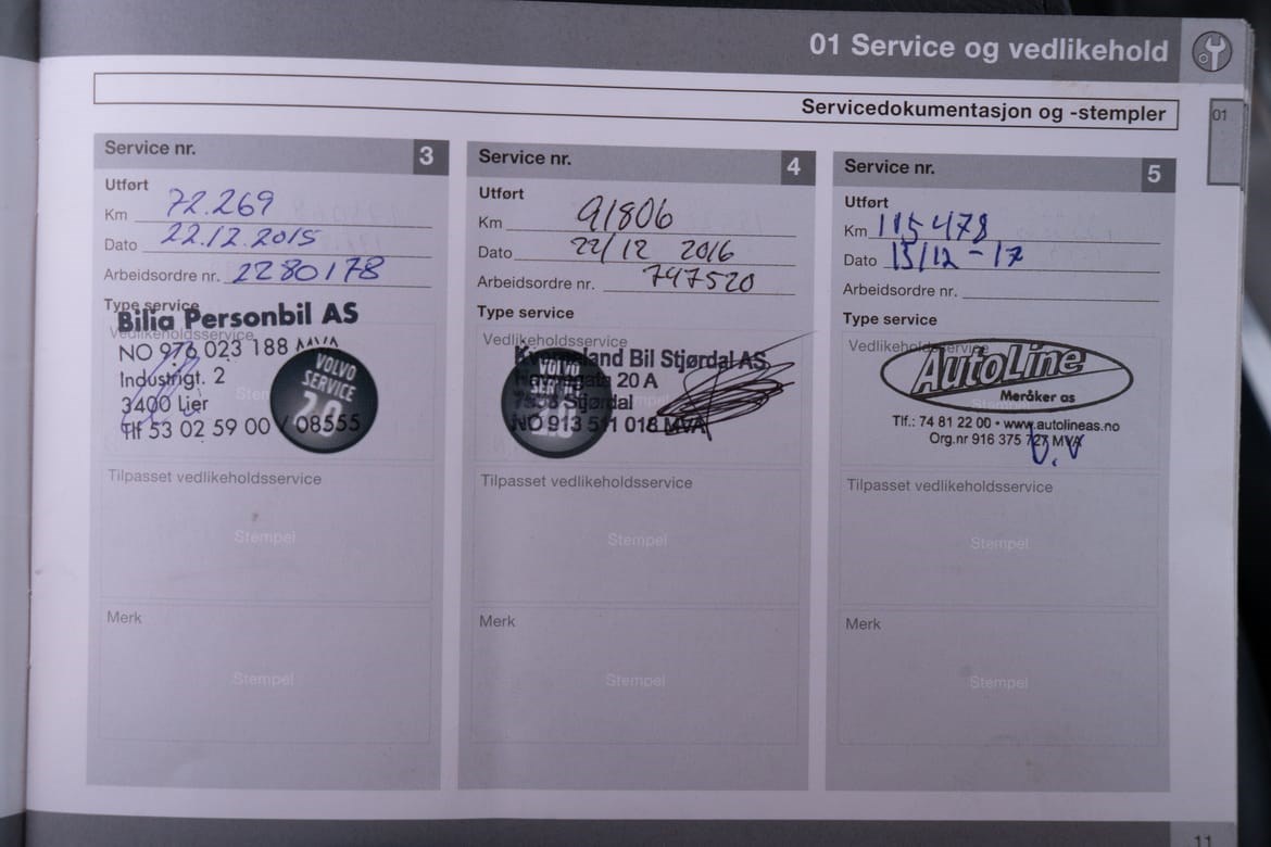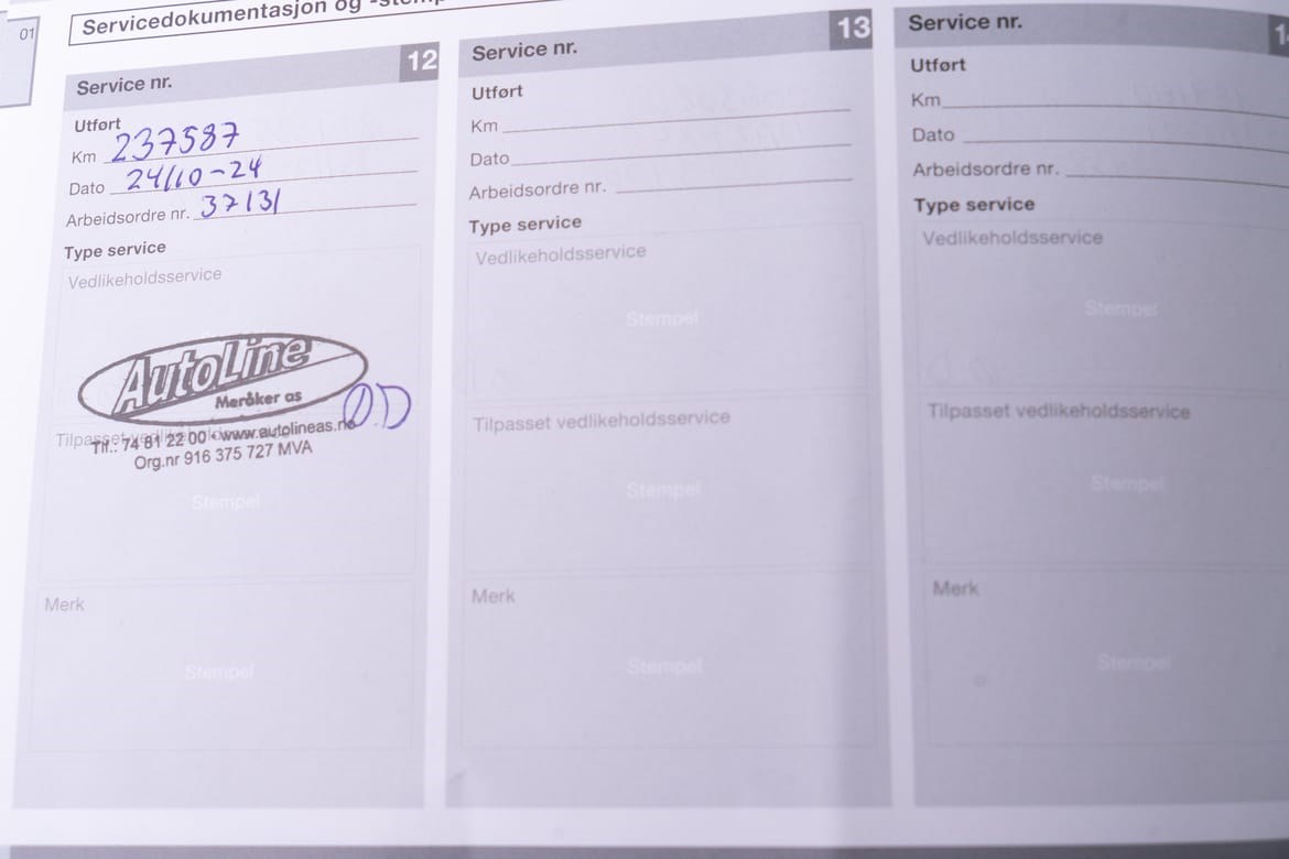 Alle servicer er utført veldig nøyaktig i henhold til bilens serviceprogram
