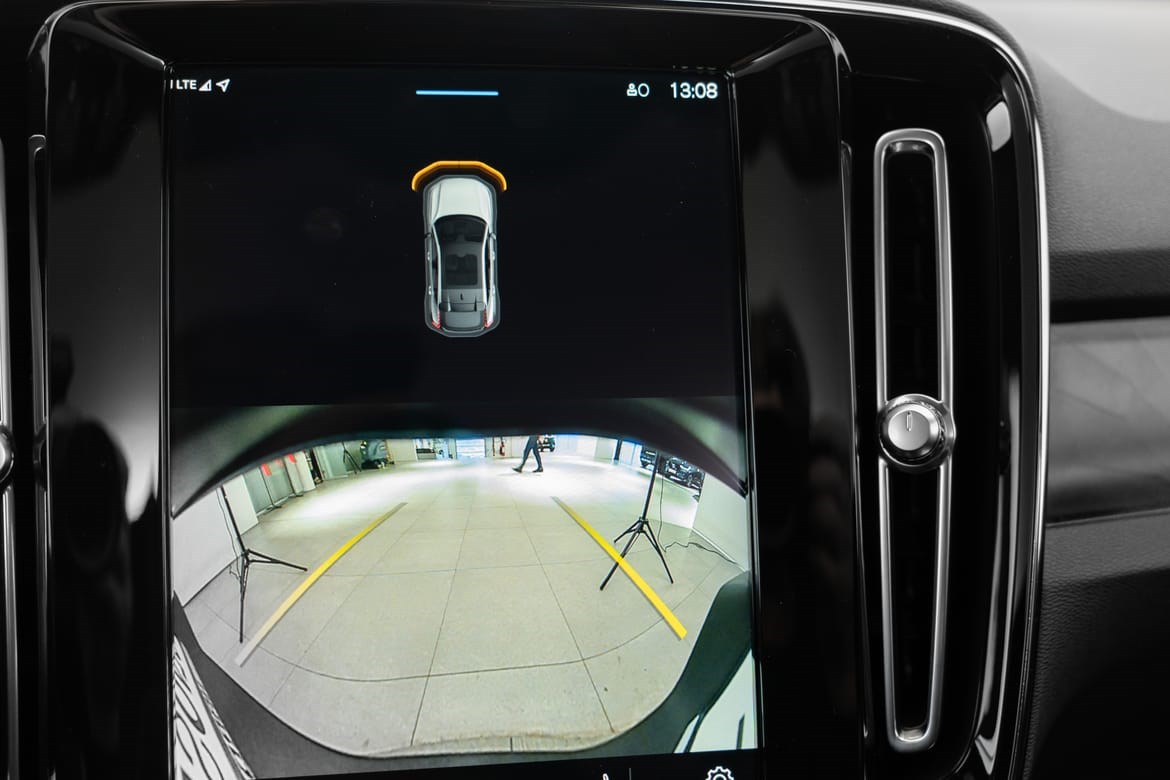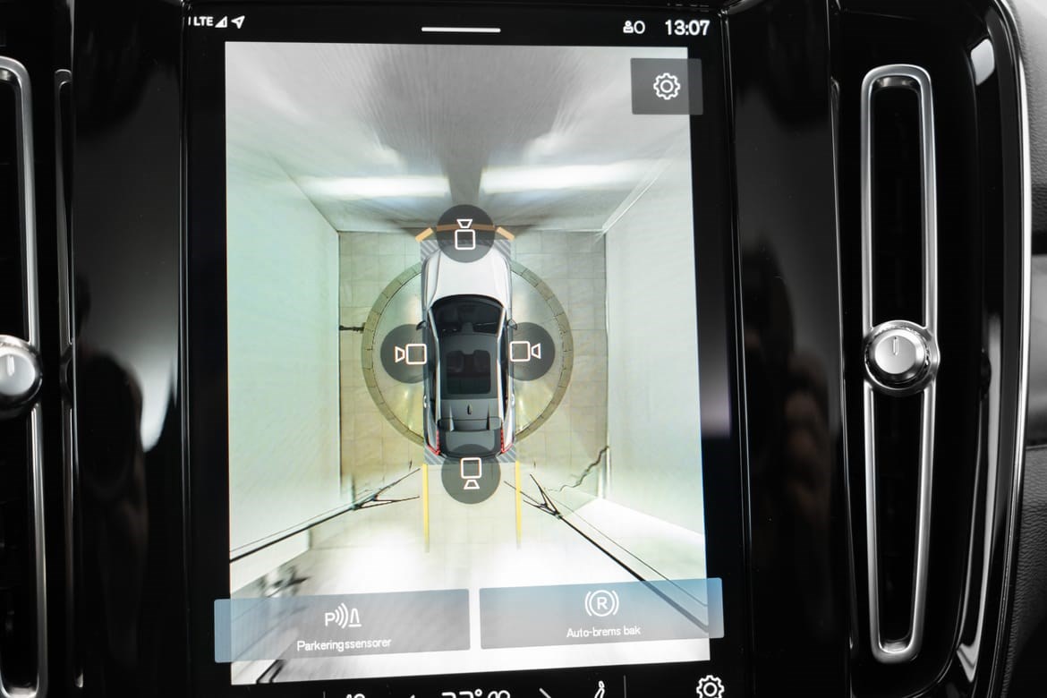 - kamerateknologien viser deg bilen din og omgivelsene i høy oppløsing i fugleperspektiv – svært nyttig når du rygger eller manøvrerer på trange steder med begrenset sikt. Systemet bruker fire kameraer: to ved sidespeilene, ett i fronten og ett bak. Hvis du berører et kamerabilde på senterdisplayet, vises det et bilde fra bare det kameraet. Det bakre kameraet kan også gi deg et forstørret bilde av området rett bak bilen, noe som er særlig praktisk når du kjører med tilhenger.