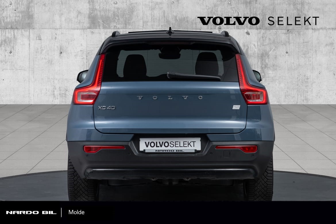 Den helelektriske Volvo XC40 kombinerer kraft, luksus og sikkerhet i en urban SUV-pakke. Med en imponerende elektrisk motor som leverer 408 hk og permanent firehjulstrekk, får du både kjøreglede og trygghet i toppklasse. Bilen byr på romslig plass og den velkjente Volvo-sikkerheten, samtidig som den leverer en elektrisk rekkevidde på opptil 417 km (WLTP) takket være en batterikapasitet på 78 kWh. På lengre turer sørger hurtiglading for at batteriet lades fra 20 % til 80 % på bare 40 minutter (med opptil 150 kW).