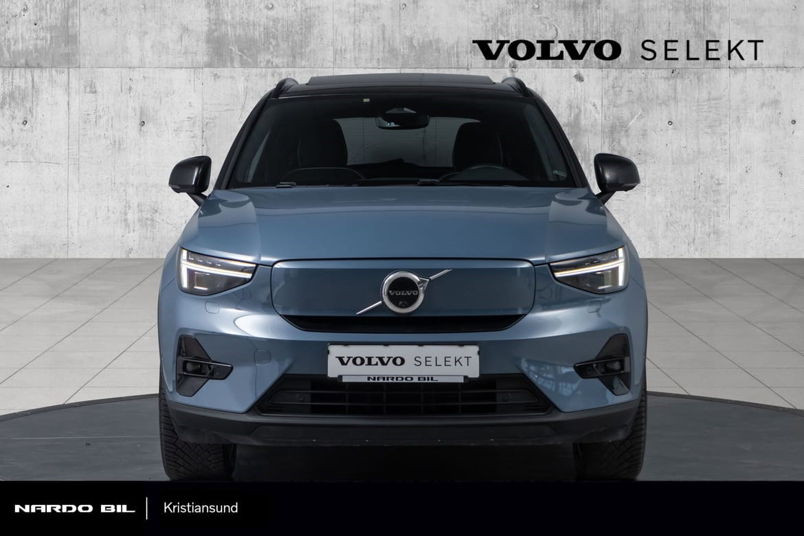 Den helelektriske Volvo XC40 kombinerer kraft, luksus og sikkerhet i en urban SUV-pakke. Med en imponerende elektrisk motor som leverer 408 hk og permanent firehjulstrekk, får du både kjøreglede og trygghet i toppklasse. Bilen byr på romslig plass og den velkjente Volvo-sikkerheten, samtidig som den leverer en elektrisk rekkevidde på opptil 417 km (WLTP) takket være en batterikapasitet på 78 kWh. På lengre turer sørger hurtiglading for at batteriet lades fra 20 % til 80 % på bare 40 minutter (med opptil 150 kW).