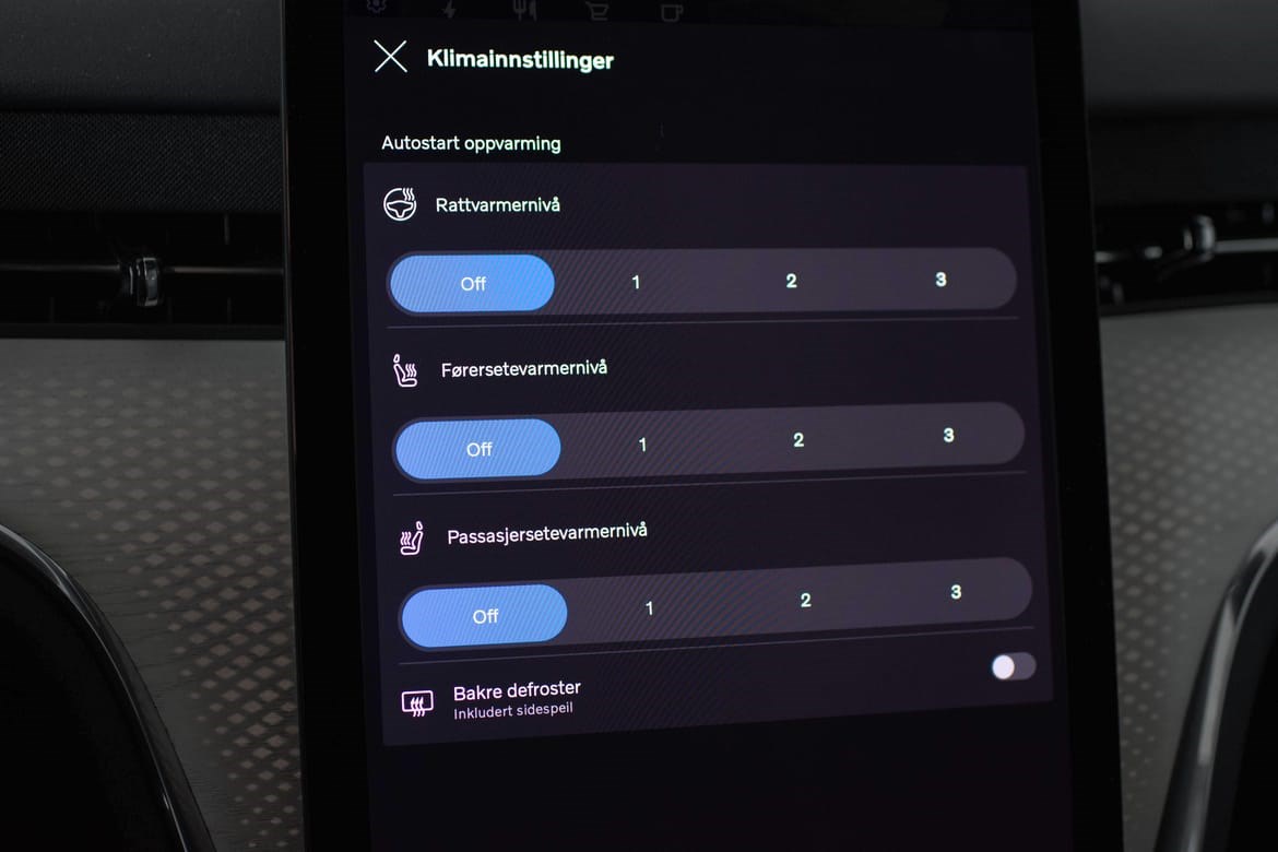 Oppvarmede seter for/bak