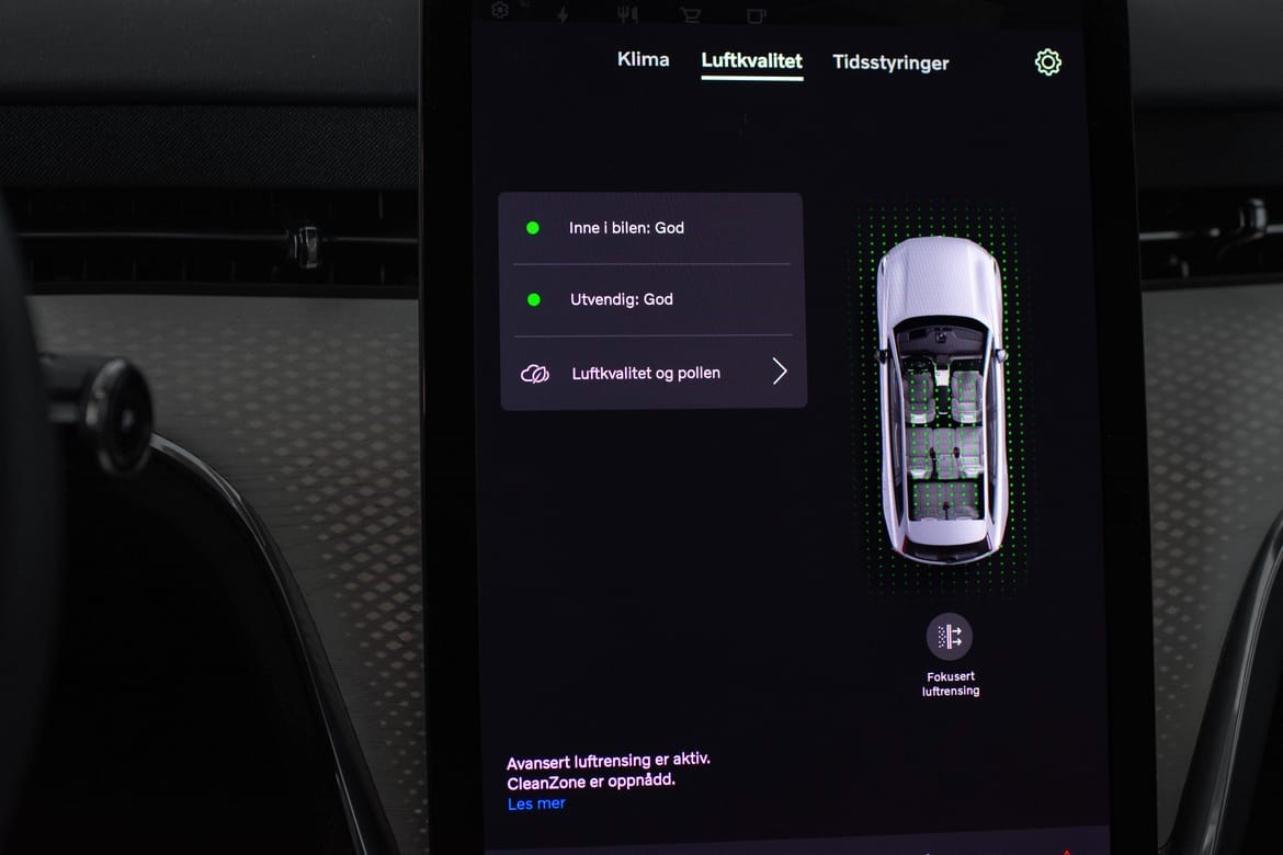 LiDAR (Light Detection and Ranging) er en teknologi som bruker infrarøde laserpulser for å måle avstander og skape en detaljert tredimensjonal forståelse av omgivelsene. I Volvo EX90 er LiDAR-sensoren strategisk plassert på taket over frontruten for å gi optimal dekning. Denne sensoren kan oppdage objekter, inkludert fotgjengere og veimerking, på avstander opptil 600 meter, selv under utfordrende lysforhold . Ved å kombinere data fra LiDAR med informasjon fra kameraer, radarer og ultralydsensorer, forbedrer EX90 bilens evne til å identifisere potensielle farer og støtte føreren i å unngå kollisjoner . Dette systemet er en del av Volvos “Safe Space Technology”, som har som mål å tilby et høyere nivå av sikkerhet for både fører og passasjerer.