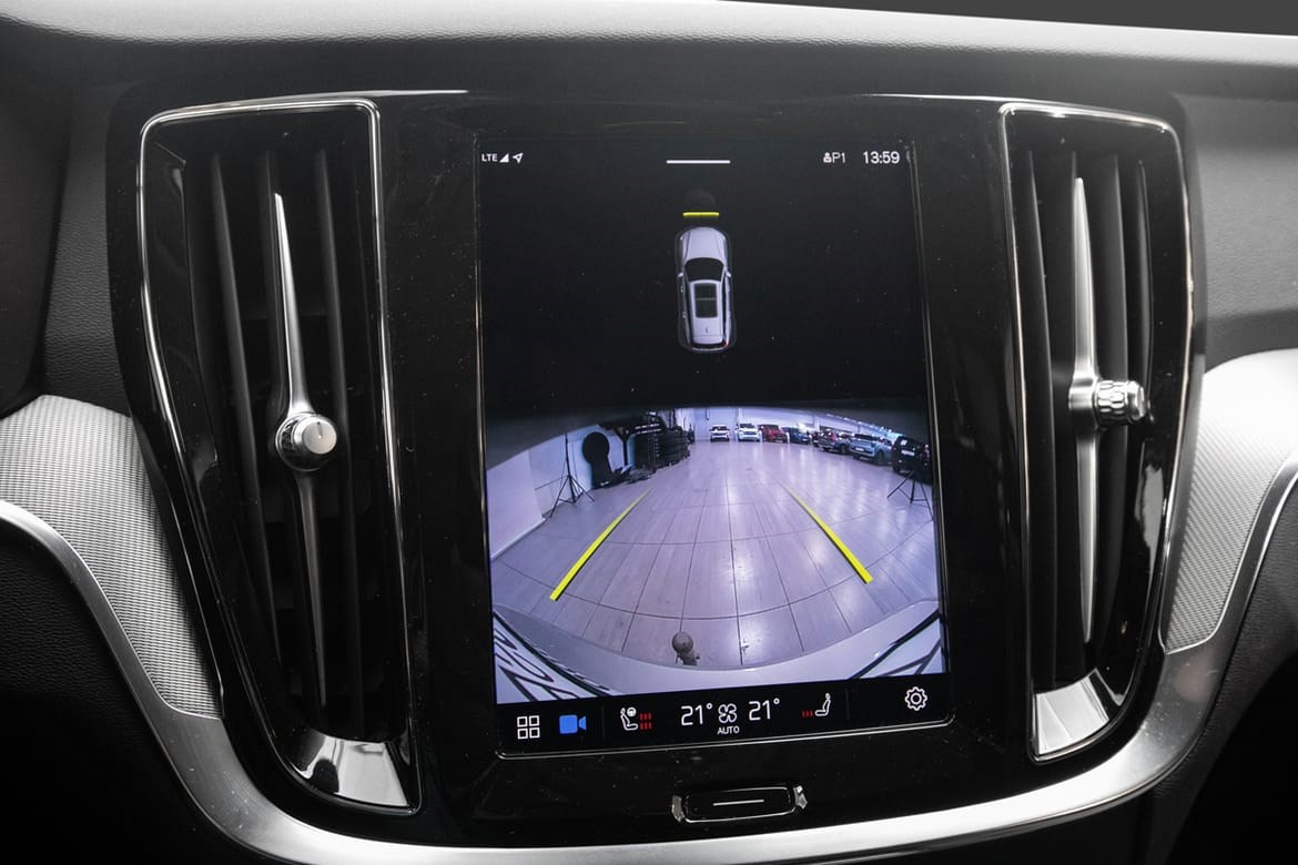 - Bakre og fremre parkeringshjelp gjør det lettere å manøvrere inn i trange rom med begrenset syn. Etter som bilen nærmer seg en hindring, blir du varslet av pulserende lyd fra bakre eller fremre høyttalere og grafikk på midtdisplayet. Frekvensen på varselsignalet øker jo nærmere du kommer hindringen.