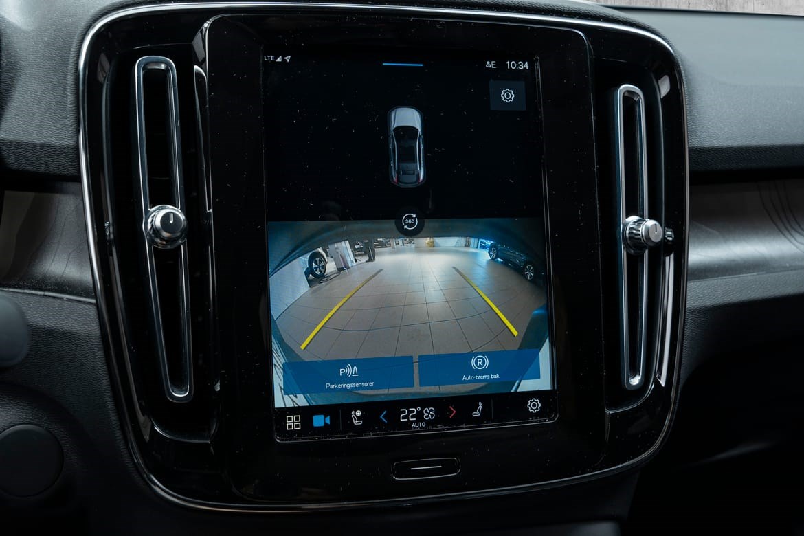 - kamerateknologien viser deg bilen din og omgivelsene i høy oppløsing i fugleperspektiv – svært nyttig når du rygger eller manøvrerer på trange steder med begrenset sikt. Systemet bruker fire kameraer: to ved sidespeilene, ett i fronten og ett bak. Hvis du berører et kamerabilde på senterdisplayet, vises det et bilde fra bare det kameraet. Det bakre kameraet kan også gi deg et forstørret bilde av området rett bak bilen, noe som er særlig praktisk når du kjører med tilhenger.