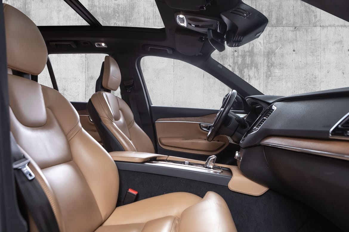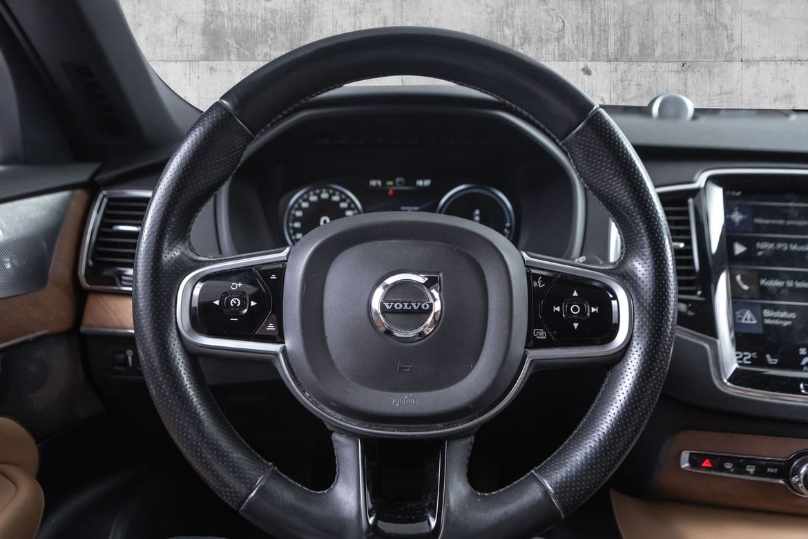 XC90 leveres med Intellisafe Surround BLIS, 360 parkeringskamera, City Safety og Run Off Road Mitigation. Parkeringssensorer foran og bak gir maksimal trygghet og oversikt.