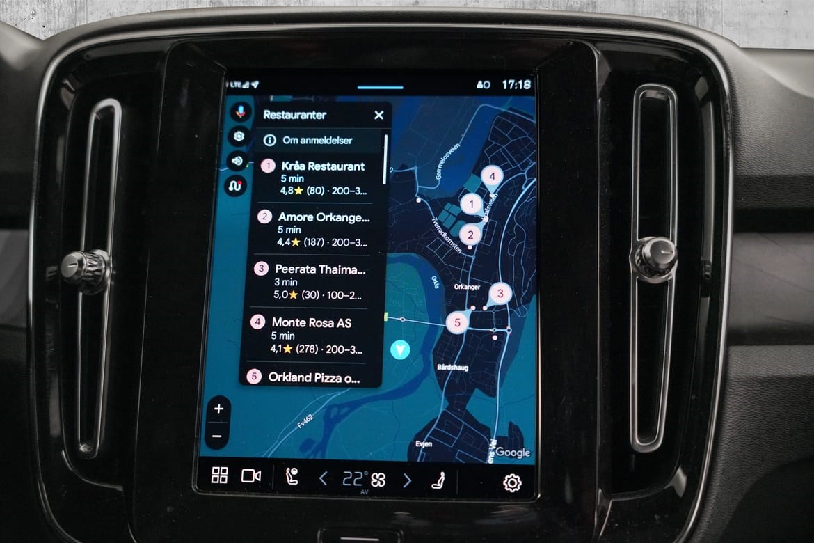 • Biler med Google innebygd er ikke berørt.