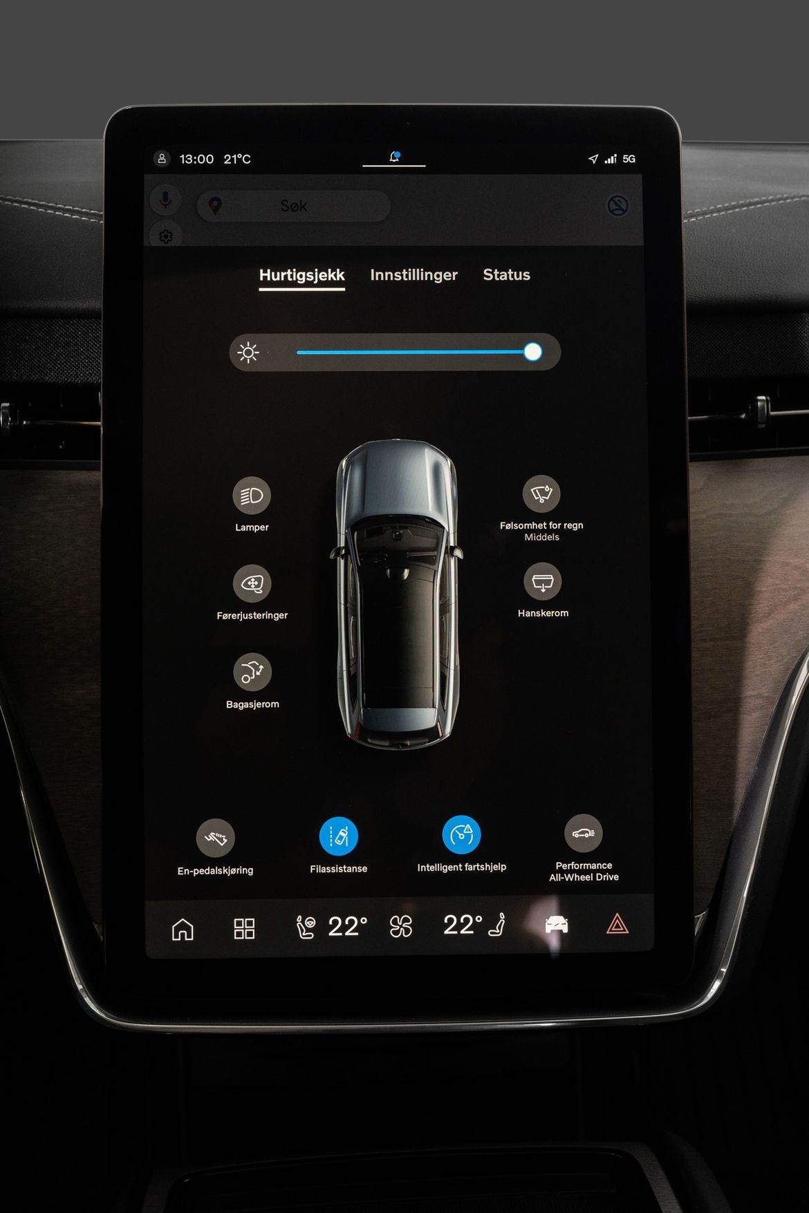 LiDAR (Light Detection and Ranging) er en teknologi som bruker infrarøde laserpulser for å måle avstander og skape en detaljert tredimensjonal forståelse av omgivelsene. I Volvo EX90 er LiDAR-sensoren strategisk plassert på taket over frontruten for å gi optimal dekning. Denne sensoren kan oppdage objekter, inkludert fotgjengere og veimerking, på avstander opptil 600 meter, selv under utfordrende lysforhold . Ved å kombinere data fra LiDAR med informasjon fra kameraer, radarer og ultralydsensorer, forbedrer EX90 bilens evne til å identifisere potensielle farer og støtte føreren i å unngå kollisjoner . Dette systemet er en del av Volvos “Safe Space Technology”, som har som mål å tilby et høyere nivå av sikkerhet for både fører og passasjerer.