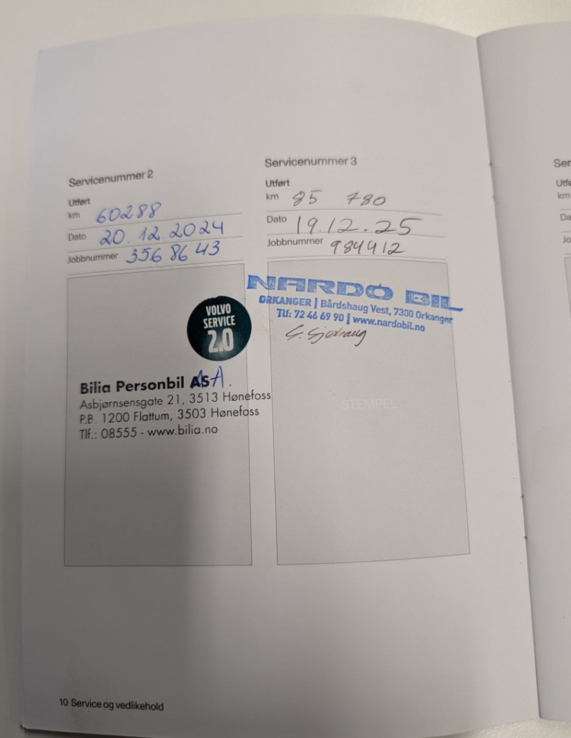 - Servicehistorikk