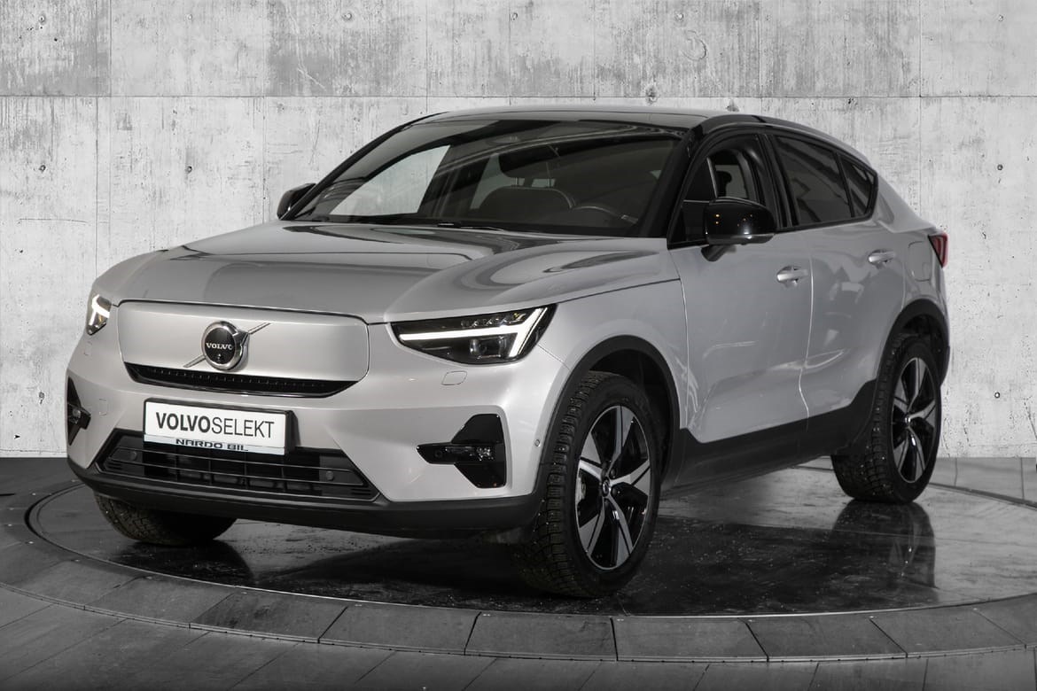 Her får du en topputstyrt Volvo C40 AWD 2022 Pro med hele 408 hk og praktiske 1800kg på kroken.