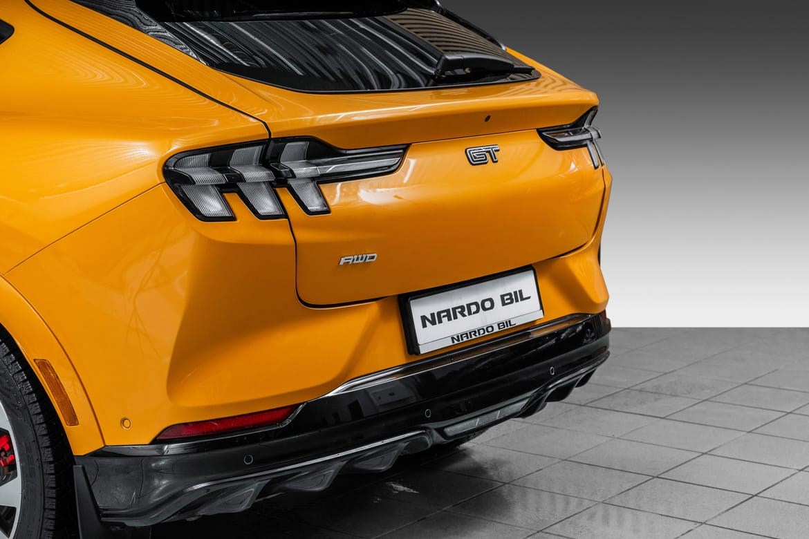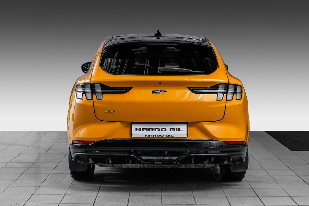 Mustang Mach-E GT leverer hele 487 hestekrefter og et dreiemoment på imponerende 860 Nm. Den akselererer fra 0 til 100 km/t på kun 3,7 sekunder, noe som plasserer den blant de raskeste i sin klasse. Med firehjulstrekk som standard får du optimalt veigrep og kontroll, uansett værforhold. Dette er en bil som leverer sportsbilfølelse i SUV-format. Rekkevidden er opptil til 540km WLTP!