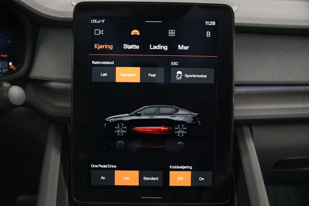 • Respons på et høyere nivå. Performance Software Upgrade øker effekten fra de elektriske motorene til 350 kW² ( 476 hk ) og dreiemomentet til 740 Nm . Den har også en launch control-funksjon som gir maks effekt fra stillestående, og fungerer i samspill med Performance-appen så G-kreftene og akselerasjonstiden kan vises i infotainmentskjermen.