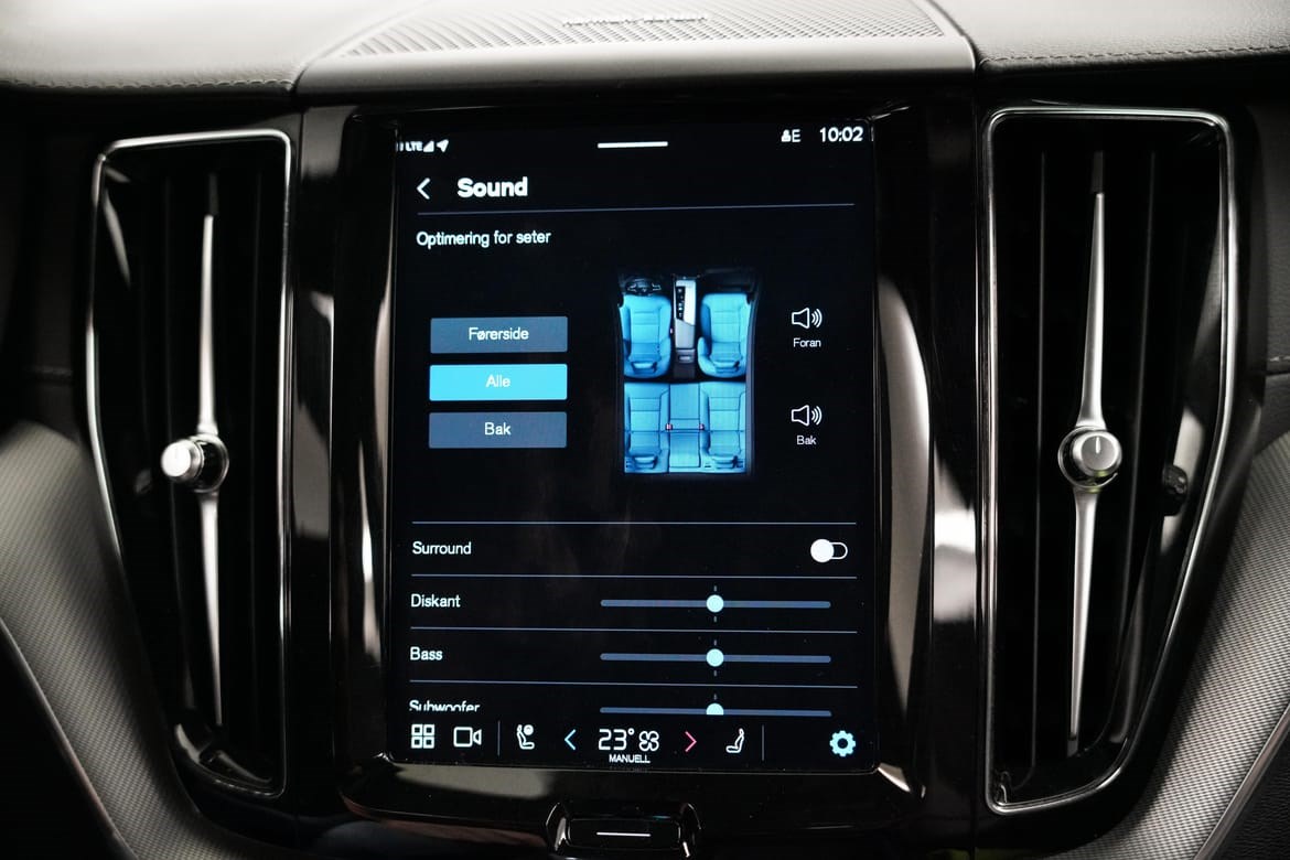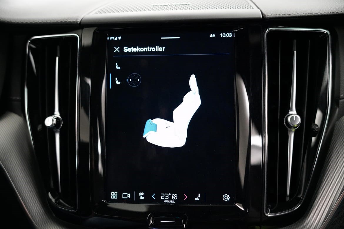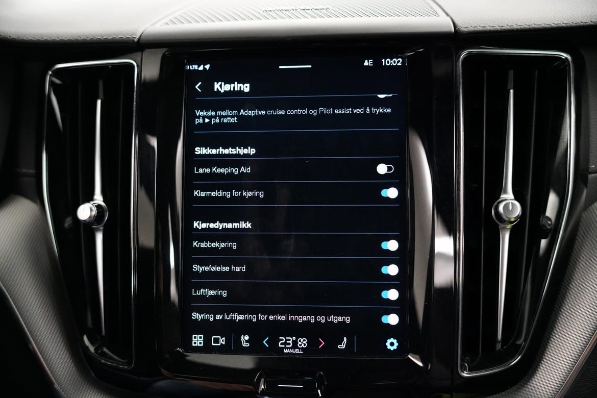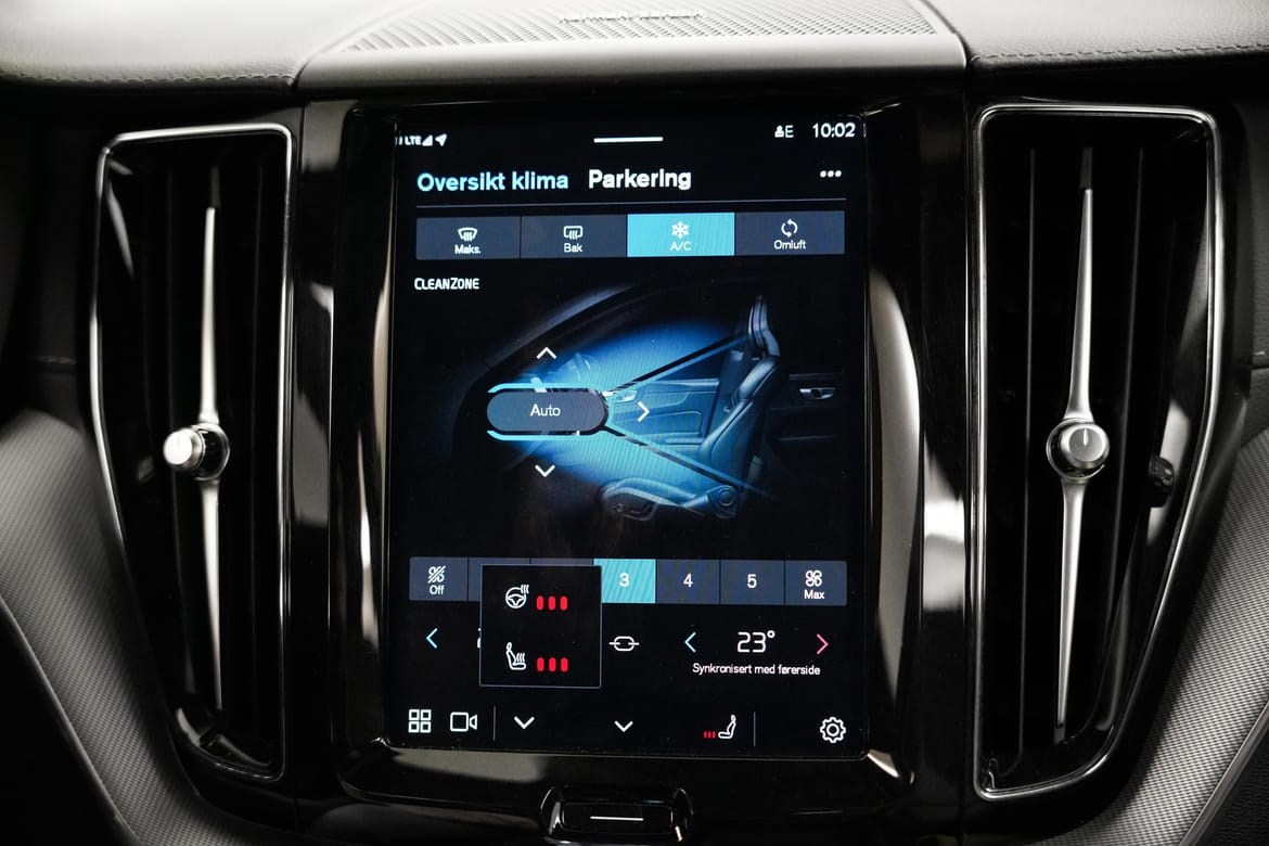 360* Ryggekamera, elektrisk bakluke, aktive LED hovedlys med Matrix automatisk nedblending og stoler foran med forlengelse av sittepute, korsrygg justering og varme, er også inkludert. Bilen har blant annet semi-elektrisk hengerfeste og Volvo On Call. Ved å laste ned en enkel app kan du regulere motorvarmer, sjekke status på bilen og mye mer.