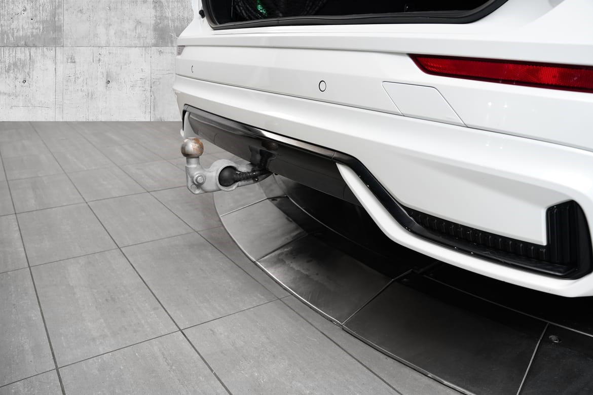 • Gled deg over vårt praktiske elektrisk innfellbare hengerfeste. Trykk på en knapp på innsiden av bagasjerommet for å felle ut tilhengerfestet. Når hengerfestet er på plass, trenger du bare et siste trykk for å feste det, så er du klar til å kjøre. Foldes enkelt bort når den ikke trengs. Hvis hengerfestet ikke låses på plass, eller hvis noen av lysene på tilhengeren slutter å fungere, blir du varslet på bilens førerdisplay. Dette hengerfestet har også vår Trailer Stability Assist-teknologi. Hvis tilhengeren begynner å vingle ved høyere fart enn 50 km/t, blir bremsene på ett eller flere hjul aktivert automatisk, slik at du får tilbake stabiliteten og kontrollen.