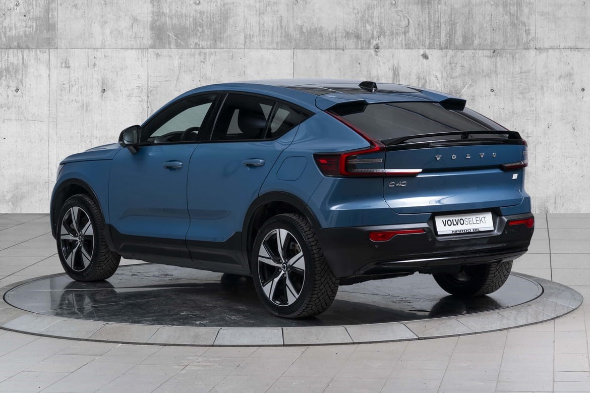- Opplev Volvos helelektriske Crossover – den første Volvomodellen i historien som kun er tilgjengelig i en helelektrisk utgave. Bilens har en elektrisk rekkevidde på 415 km (WLTP). Med Volvo C40 får du innebygd sikkerhet, komfort og Google infotainmentsystem. Google Maps er sømløst integrert, Google Assistant gir deg enkel tilgang til veibeskrivelse og underholdning, Google Play lar deg laste ned apper og automatiske skyoppdateringer lar deg dra nytte av en bil som stadig forbedrer seg til nyeste og beste versjon. I denne bilen får man komfort, kjøreegenskaper, premium-følelse og flere praktiske egenskaper