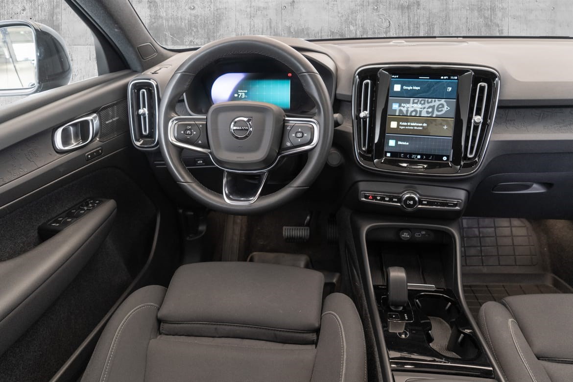 - Opplev Volvos helelektriske Crossover – den første Volvomodellen i historien som kun er tilgjengelig i en helelektrisk utgave. Bilen er en forhjulstrekker med 231 hk og en elektrisk rekkevidde på 428 km (WLTP). Med Volvo C40 får du innebygd sikkerhet, komfort og Google infotainmentsystem. Google Maps er sømløst integrert, Google Assistant gir deg enkel tilgang til veibeskrivelse og underholdning, Google Play lar deg laste ned apper og automatiske skyoppdateringer lar deg dra nytte av en bil som stadig forbedrer seg til nyeste og beste versjon. I denne bilen får man komfort, kjøreegenskaper, premium-følelse og flere praktiske egenskaper