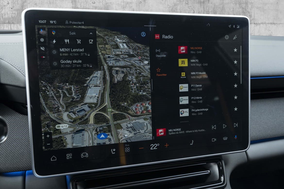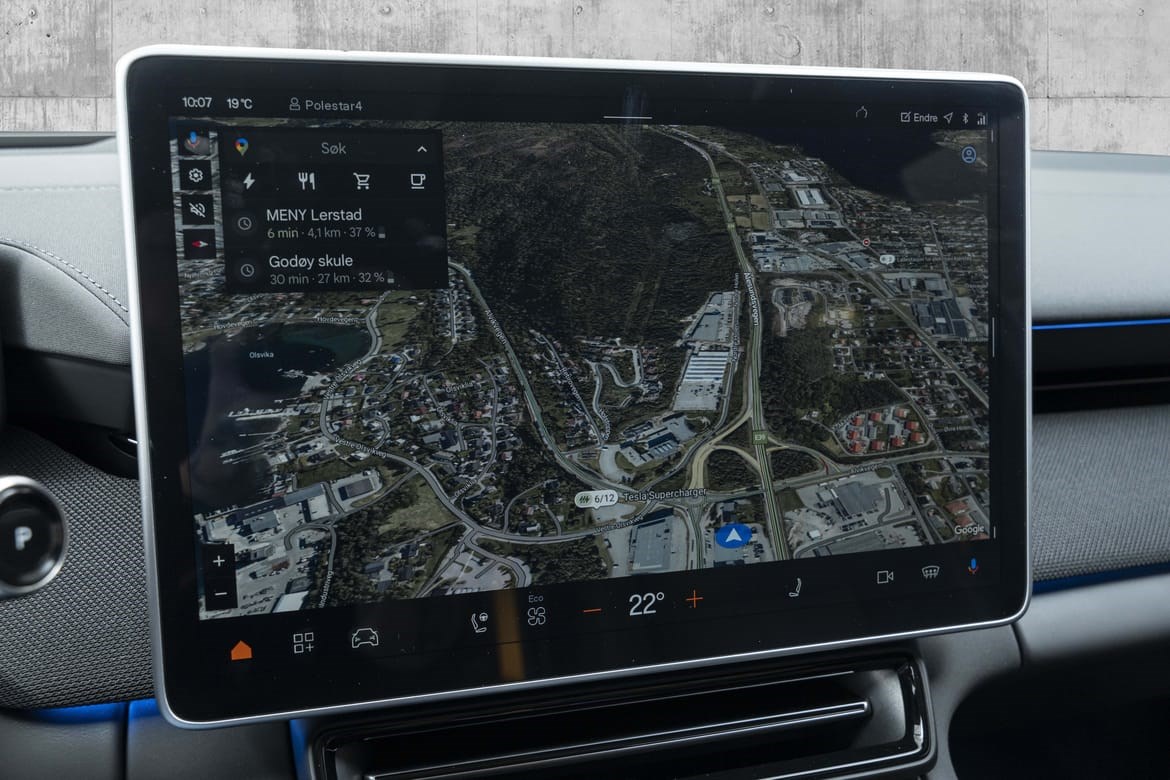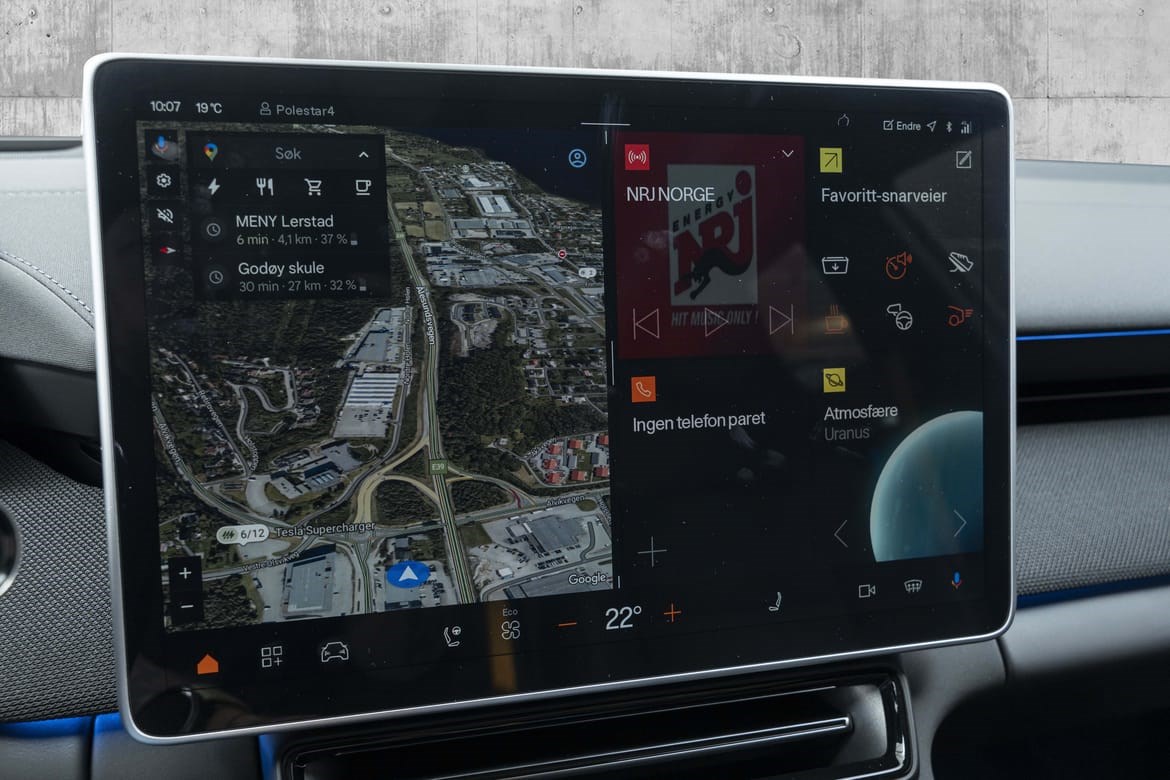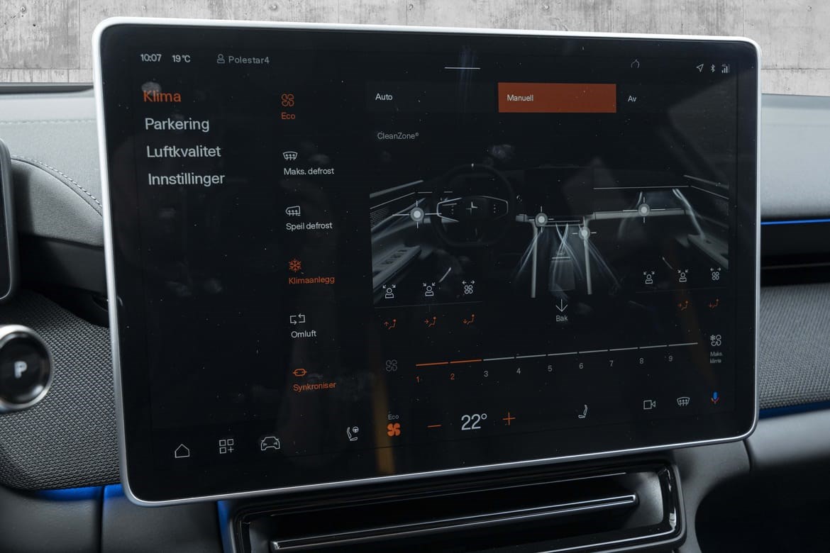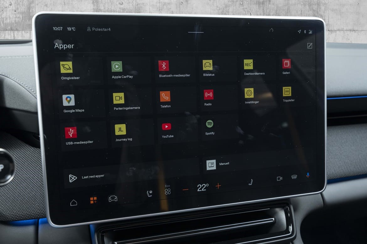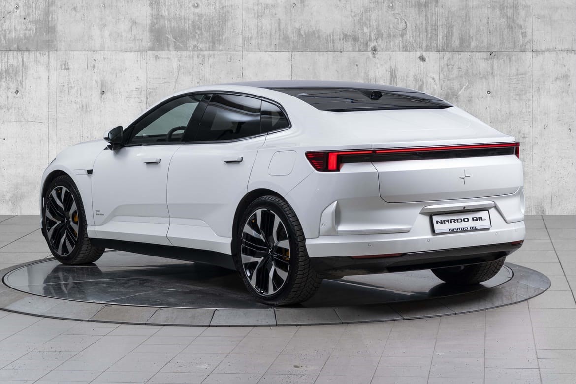 Polestar 4 Long Range Dual Motor leverer hele 544 hestekrefter og et dreiemoment på 686 Nm. Firehjulstrekk og lynrask akselerasjon fra 0–100 km/t på bare 3,8 sekunder gjør dette til en av de raskeste bilene i sin klasse. Takket være det avanserte doble motoroppsettet får du både imponerende kraft og presis kontroll, uansett kjøreforhold.