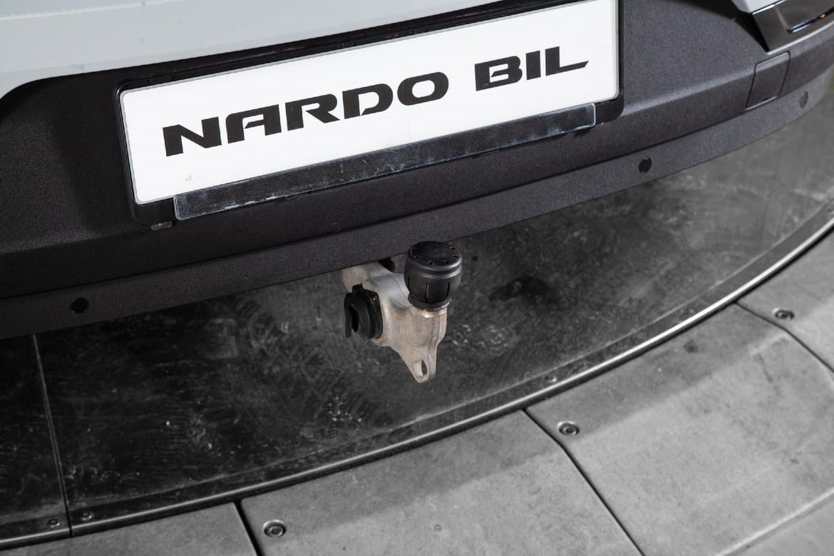 - Det innfellbare tilhengerfeste er der når du trenger det-og er ute av veien når du ikke gjør det. Trykk på en knapp i bagasjerommet, så felles tilhengerfeste ut automatisk. Det eneste du trenger å gjøre, er å låse det plass med ett klikk