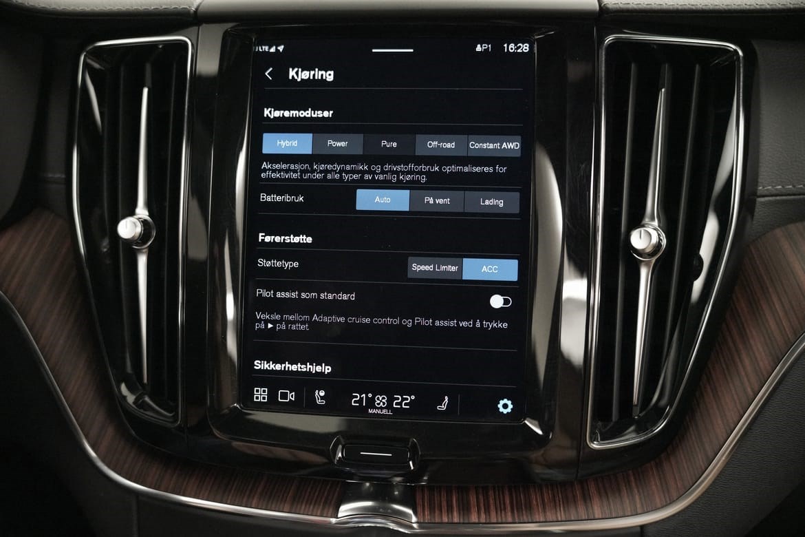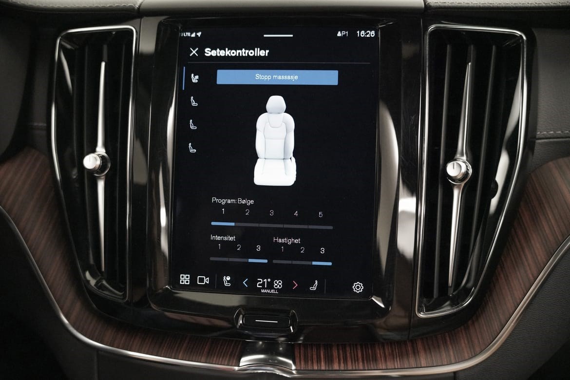 360* Ryggekamera, elektrisk bakluke, aktive LED hovedlys med Matrix automatisk nedblending og stoler foran med forlengelse av sittepute, korsrygg justering og varme, er også inkludert. Bilen har blant annet semi-elektrisk hengerfeste og Volvo On Call. Ved å laste ned en enkel app kan du regulere motorvarmer, sjekke status på bilen og mye mer.