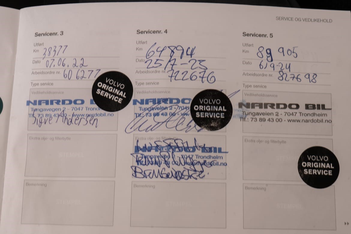 Alle servicer utført hos autorisert Volvo-forhandler – i tråd med bilens originale serviceprogram!