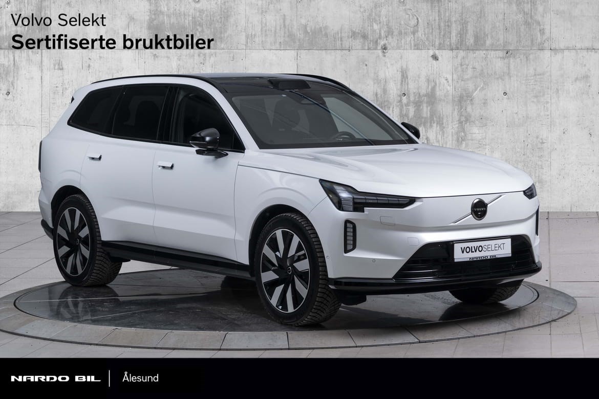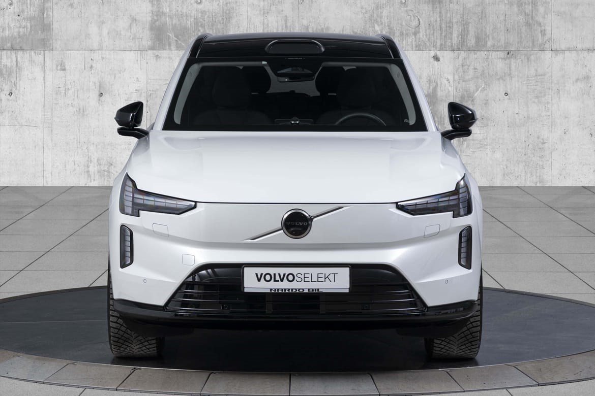 Volvo EX90 Twin Motor Performance 517hk Ultra 7-seter klar for salg hos oss! Denne bilen er oppgitt til 599km WLTP rekkevidde.