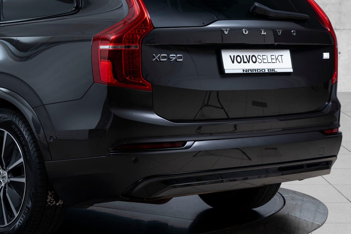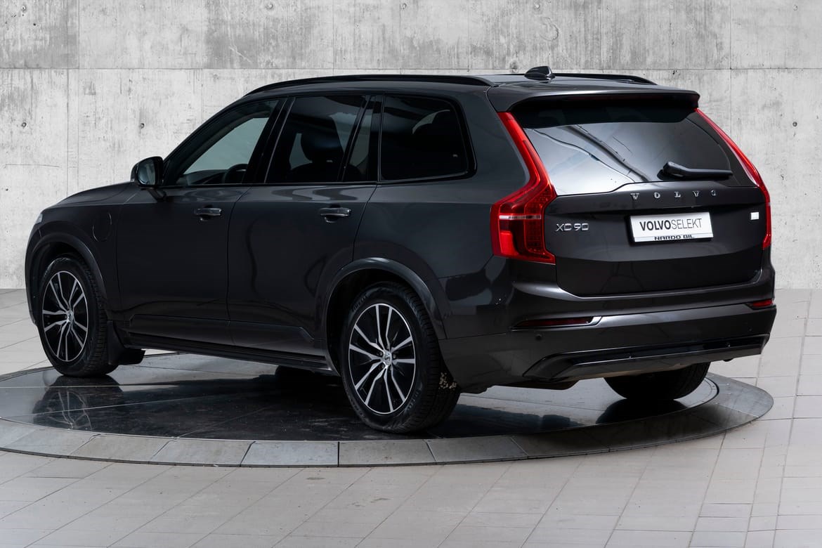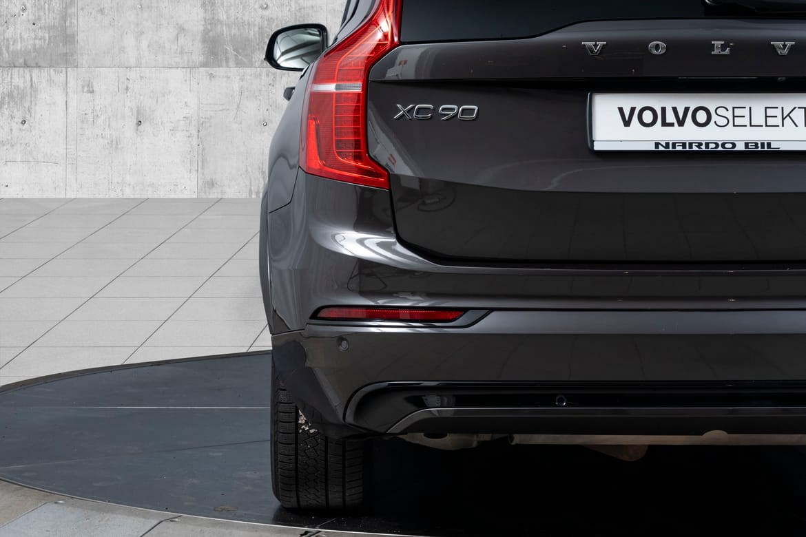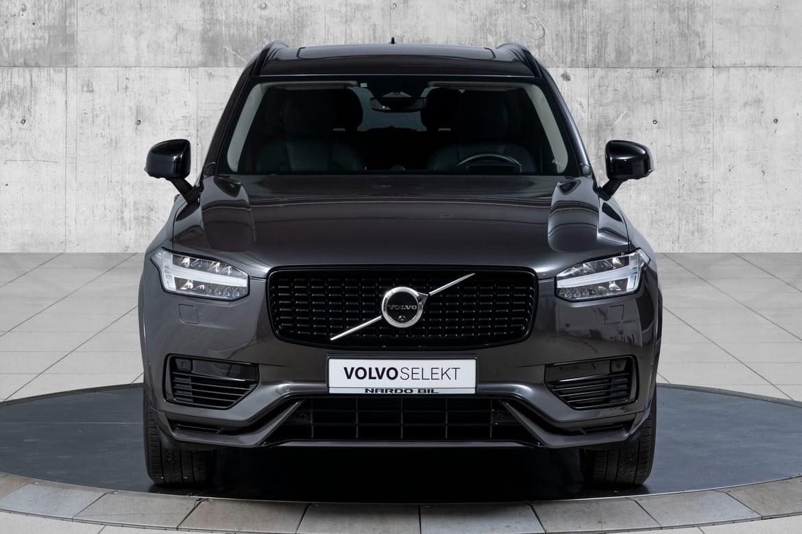 XC90 fremstår som en elegant og kraftfull SUV med sitt sofistikerte design. De mørktonede rutene gir bilen et eksklusivt uttrykk, mens panoramasoltaket skaper en åpen og luftig atmosfære i kupeen. De svingbare LED-hovedlysene gir optimal sikt i mørket og fremhever bilens moderne utseende.