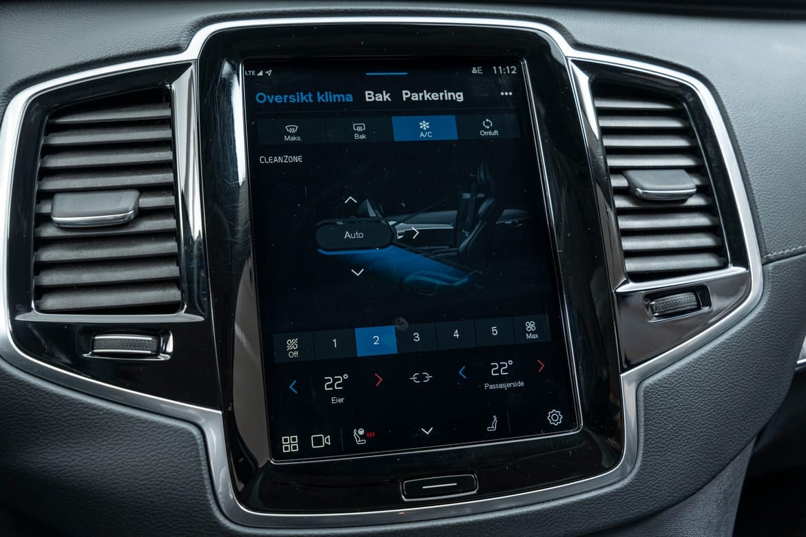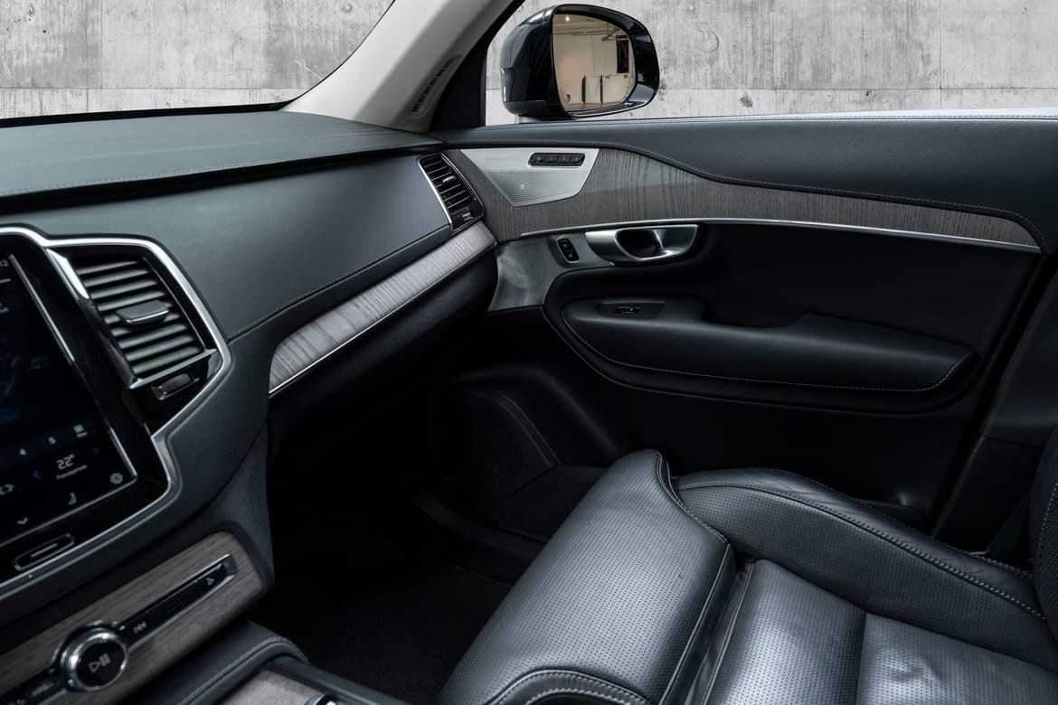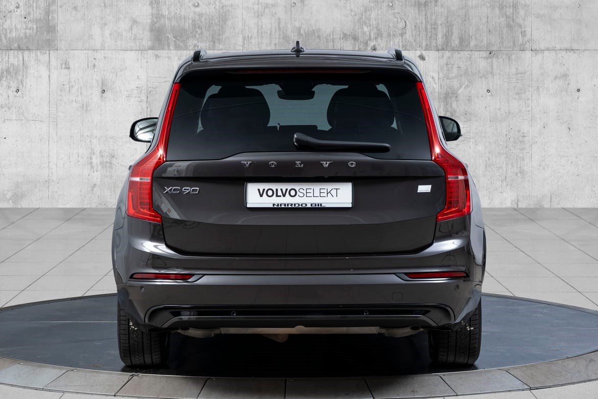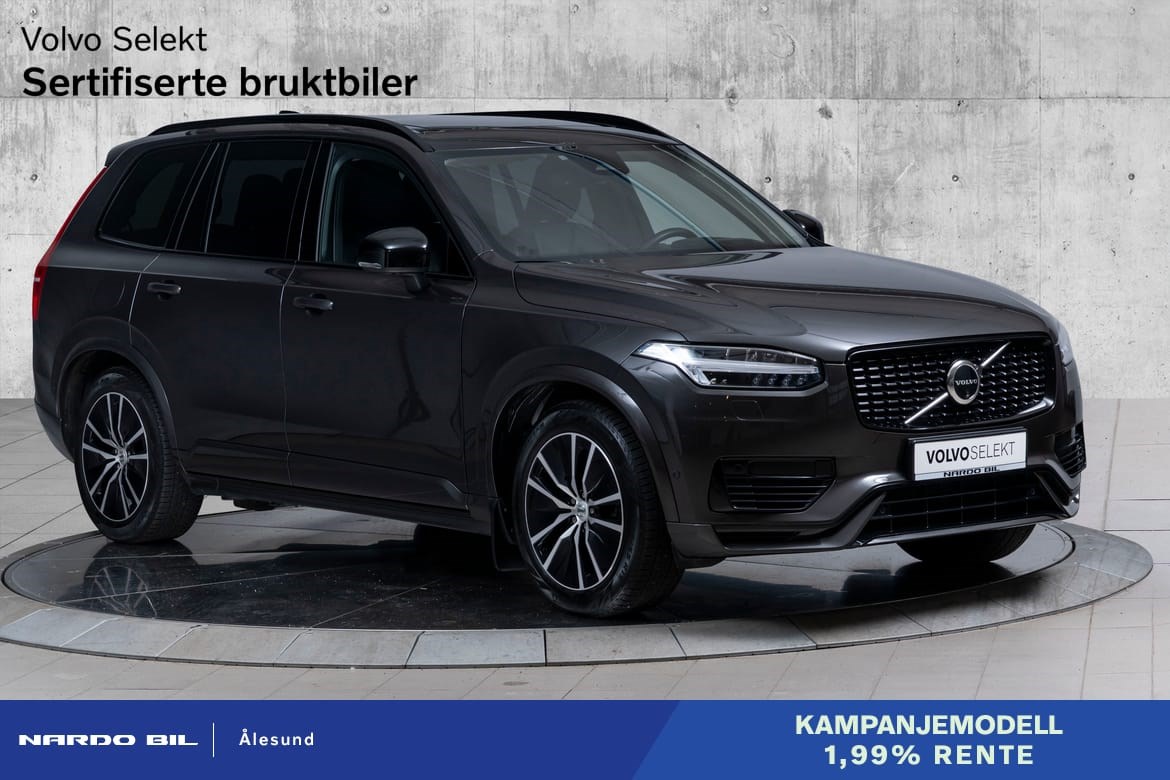 XC90 fremstår som en elegant og kraftfull SUV med sitt sofistikerte design. De mørktonede rutene gir bilen et eksklusivt uttrykk, mens panoramasoltaket skaper en åpen og luftig atmosfære i kupeen. De svingbare LED-hovedlysene gir optimal sikt i mørket og fremhever bilens moderne utseende.
