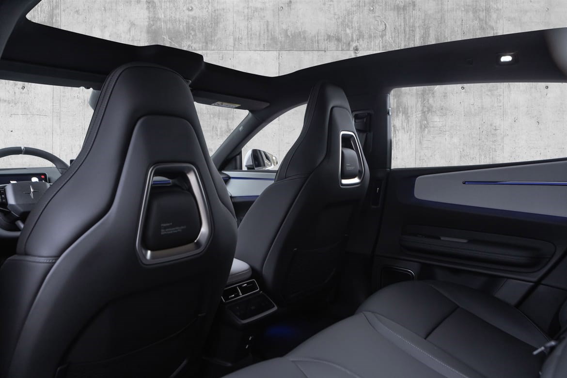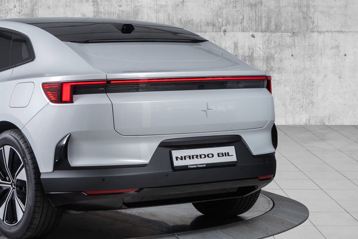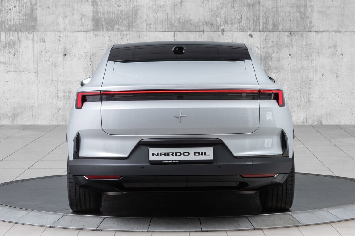 Coupé-SUV: Polestar 4 mangler bakrute (erstattet av et kamera), noe som gir en veldig strømlinjeformet taklinje.