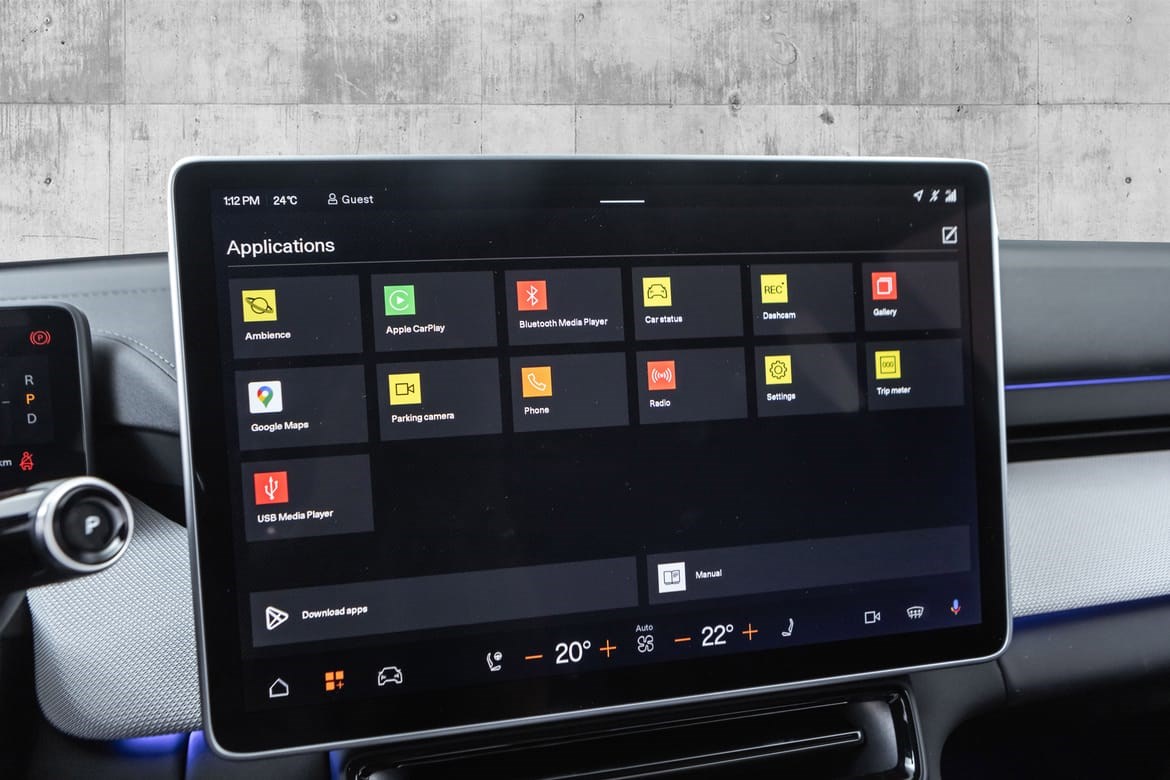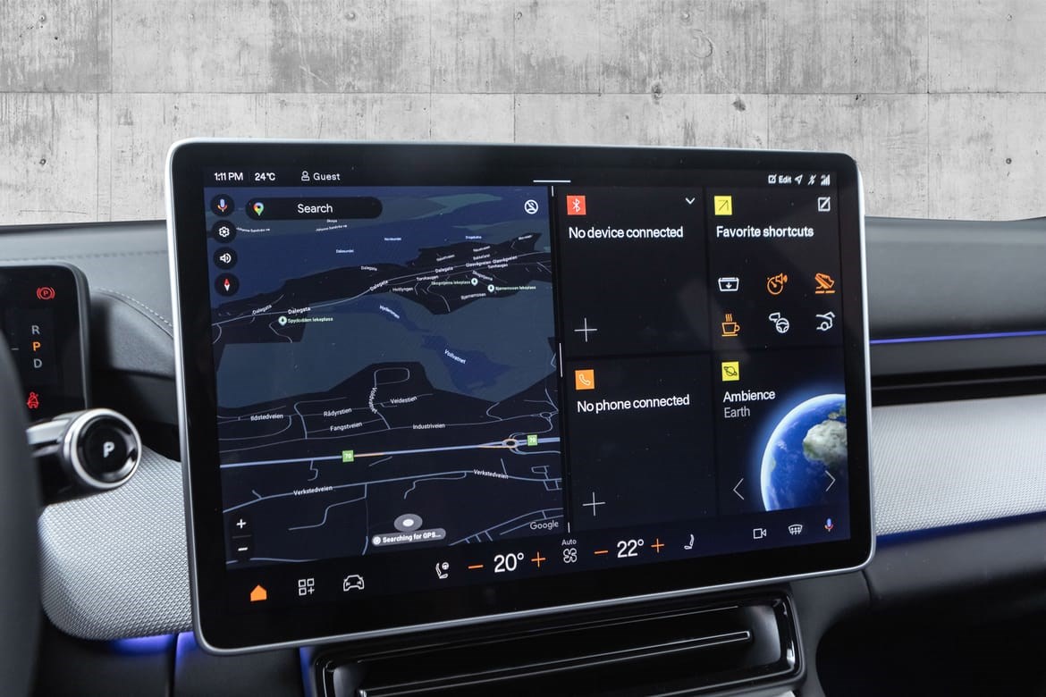 Android Automotive: Infotainment-systemet er bygget på Google Android, med Google Maps, Assistant og Play Store innebygd.