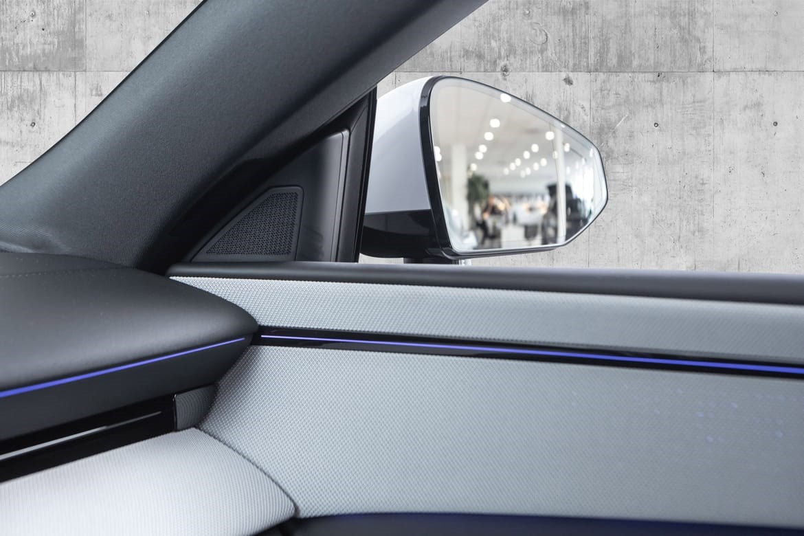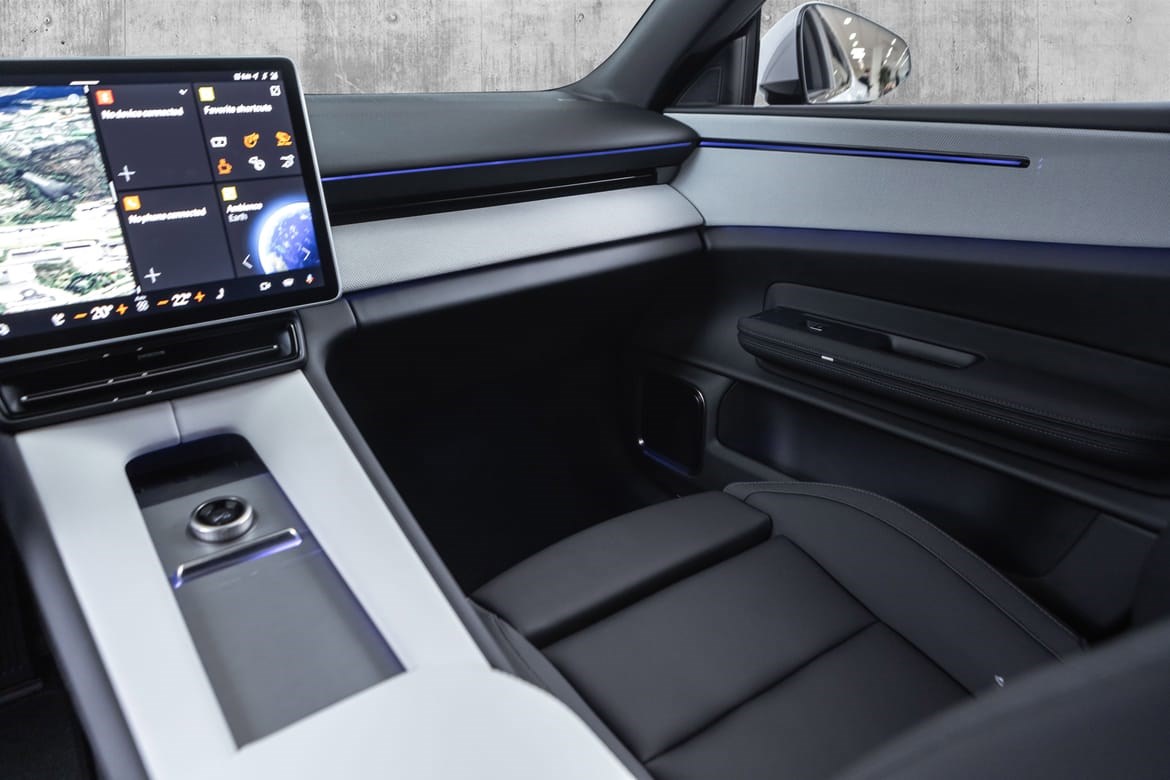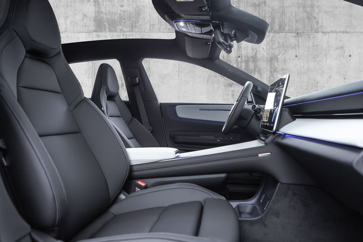 Kupé: Minimalistisk design med bærekraftige materialer. 2026-modellen har oppdaterte fysiske knapper på rattet og nye interiørløsninge