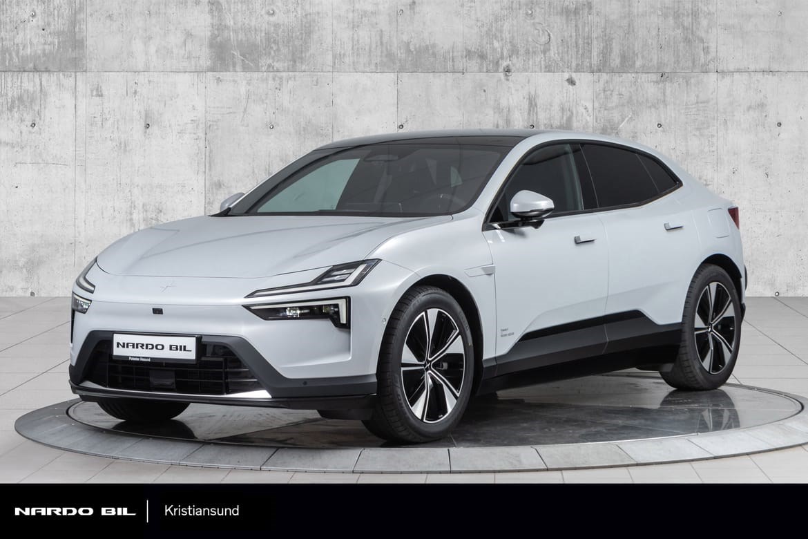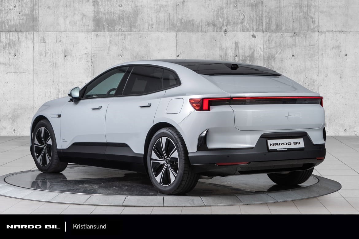 Polestar 4 Long Range Dual Motor er utstyrt med to elektriske motorer (én på hver aksel) som gir en total effekt på 544 hestekrefter. Den er designet for maksimalt veigrep og ytelse.