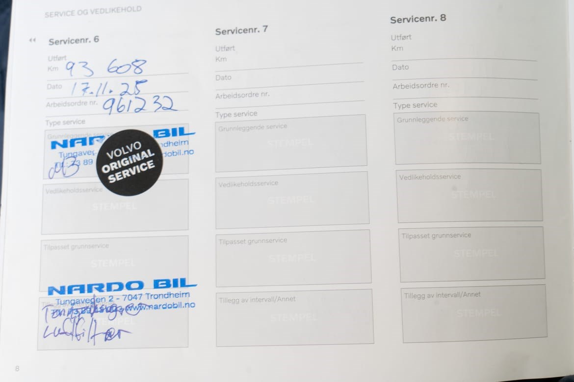 Siste service ble utført 17.11.2025 på 93 608 km