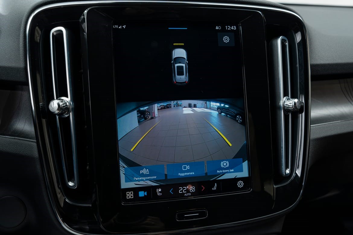 - Bakre og fremre parkeringshjelp gjør det lettere å manøvrere inn i trange rom med begrenset syn. Etter som bilen nærmer seg en hindring, blir du varslet av pulserende lyd fra bakre eller fremre høyttalere og grafikk på midtdisplayet. Frekvensen på varselsignalet øker jo nærmere du kommer hindringen.