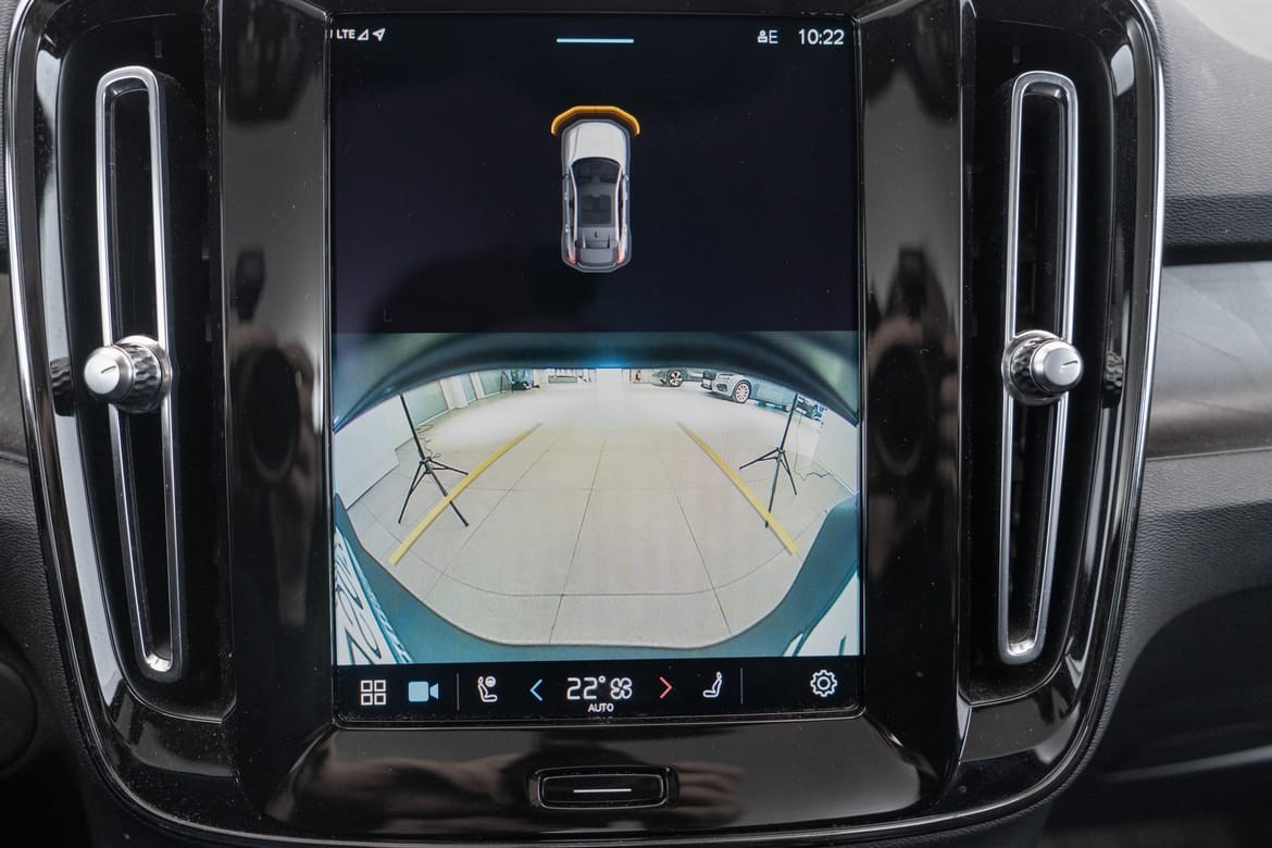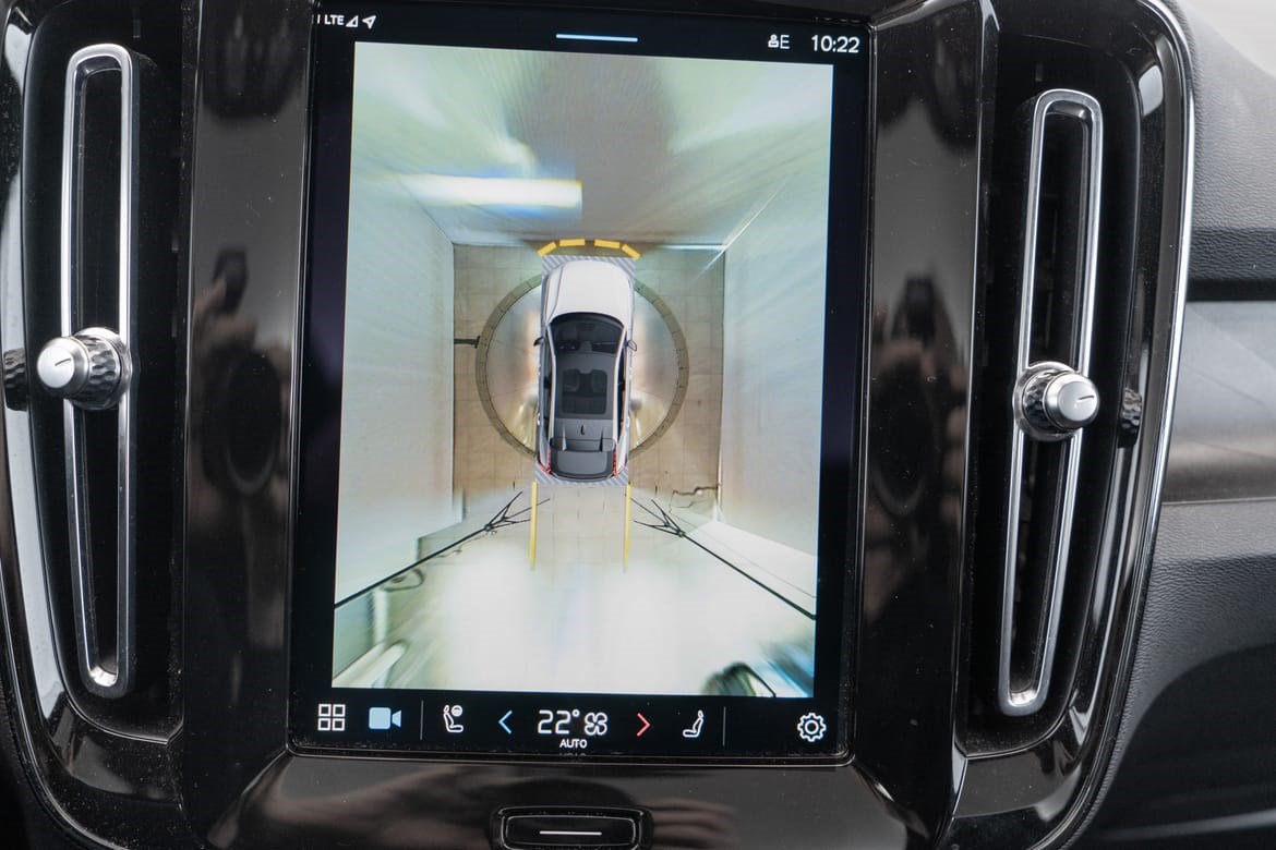 - kamerateknologien viser deg bilen din og omgivelsene i høy oppløsing i fugleperspektiv – svært nyttig når du rygger eller manøvrerer på trange steder med begrenset sikt. Systemet bruker fire kameraer: to ved sidespeilene, ett i fronten og ett bak. Hvis du berører et kamerabilde på senterdisplayet, vises det et bilde fra bare det kameraet. Det bakre kameraet kan også gi deg et forstørret bilde av området rett bak bilen, noe som er særlig praktisk når du kjører med tilhenger.