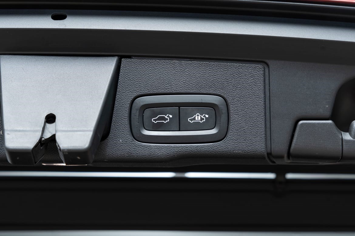 - Gled deg over Volvos praktiske elektrisk innfellbare hengerfeste. Trykk på en knapp på innsiden av bagasjerommet for å felle ut tilhengerfestet. Når hengerfestet er på plass, trenger du bare et siste trykk for å feste det, så er du klar til å kjøre. Foldes enkelt bort når den ikke trengs. Hvis hengerfestet ikke låses på plass, eller hvis noen av lysene på tilhengeren slutter å fungere, blir du varslet på bilens førerdisplay. Dette hengerfestet har også vår Trailer Stability Assist-teknologi. Hvis tilhengeren begynner å vingle ved høyere fart enn 50 km/t, blir bremsene på ett eller flere hjul aktivert automatisk, slik at du får tilbake stabiliteten og kontrollen.