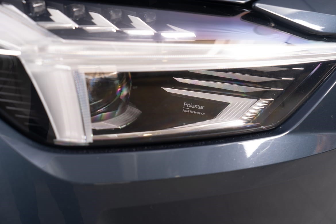 Panoramatak med projisert Polestar-symbol – et estetisk signaturtrekk som imponerer både dag og natt