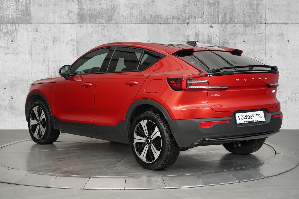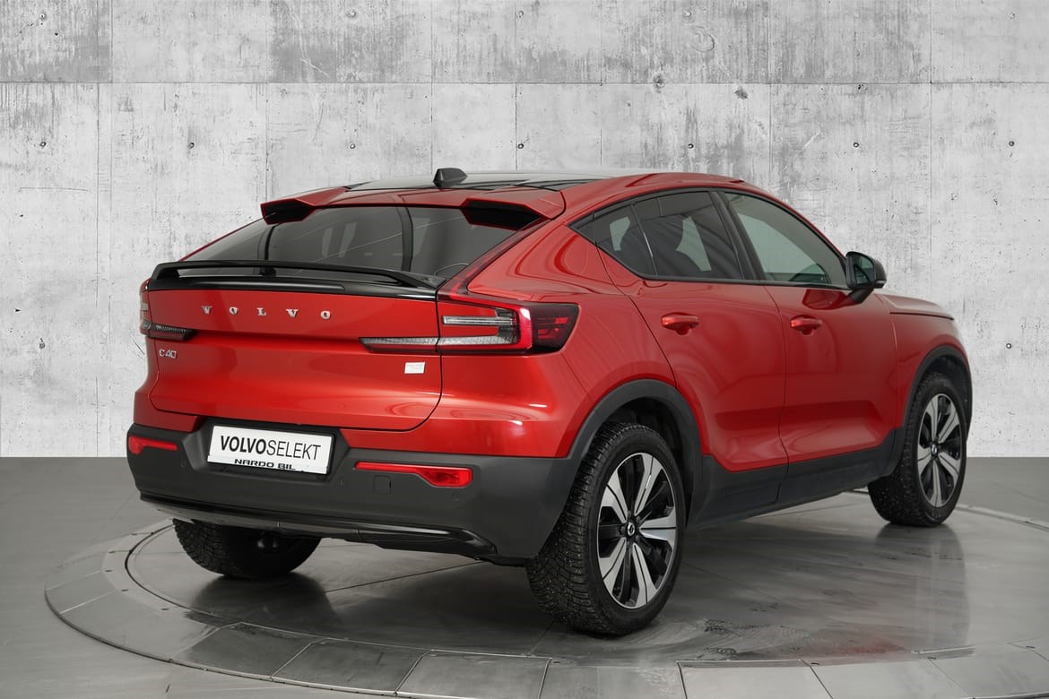 Her har du en luksuriøs og urban SUV som byr på god plass, kjøreglede og ikke minst skikkelig Volvo-sikkerhet. Volvo C40 har et Android-basert Google-infotainmentsystem, der sanntidstjenester som Google Assistant, Google Maps og Google Play Store er innebygd. Systemet sørger samtidig for at bilen til enhver tid er like oppdatert og moderne som alle andre digitale produkter man har i dag, via OTA – Over The Air oppdateringer. Med Volvo C40 får du smarte oppbevaringsløsninger, semi-elektrisk hengerfeste (opptil 1800 kg) og 413 liter bagasjerom.
